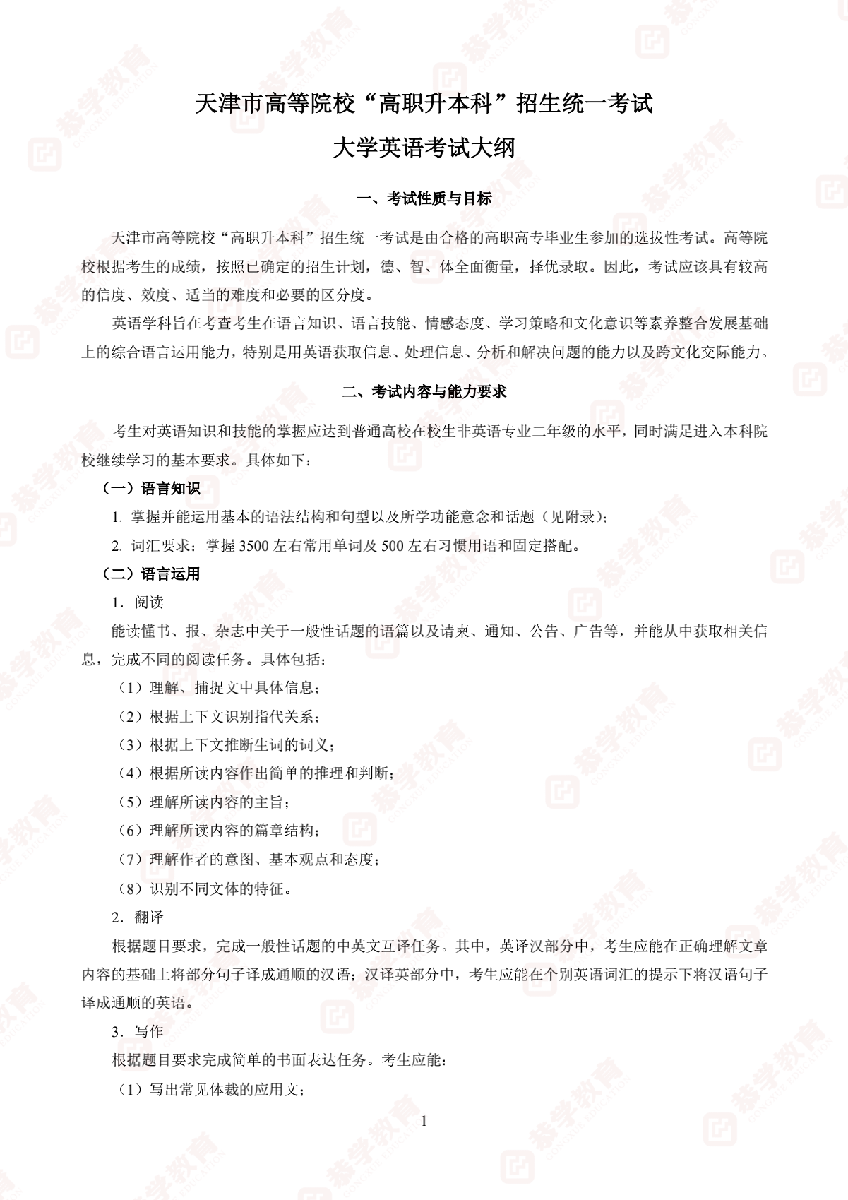 【恭学教育】升本院校考试大纲