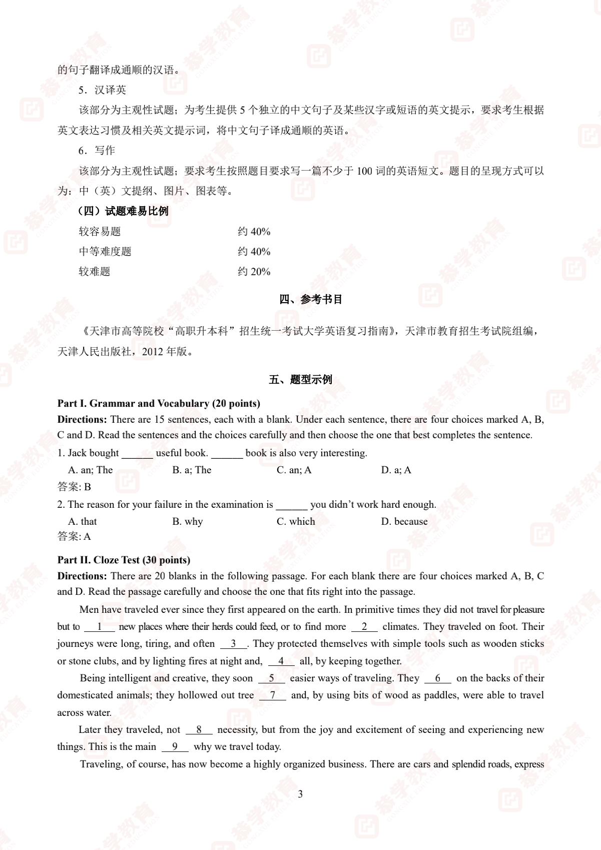 天津专升本|2022年天津市高职升本文化课大纲(英语)