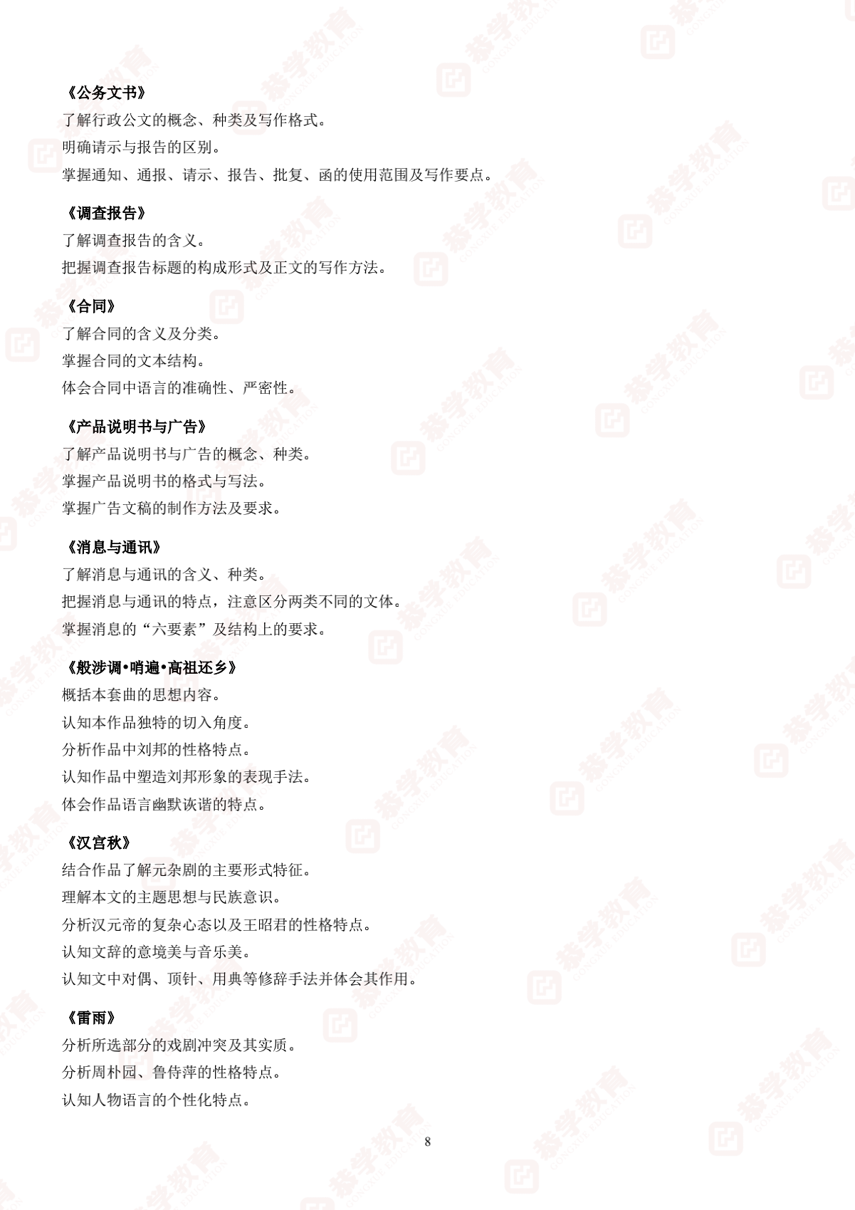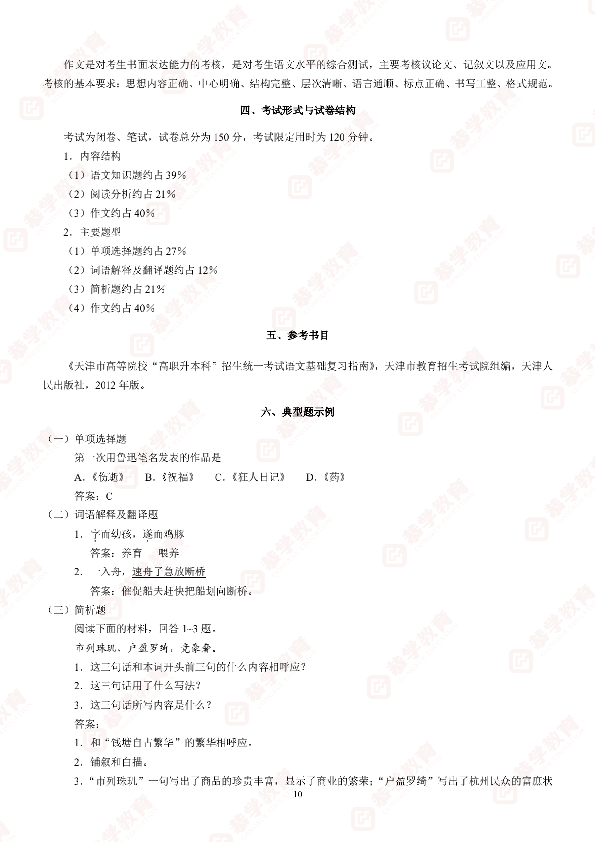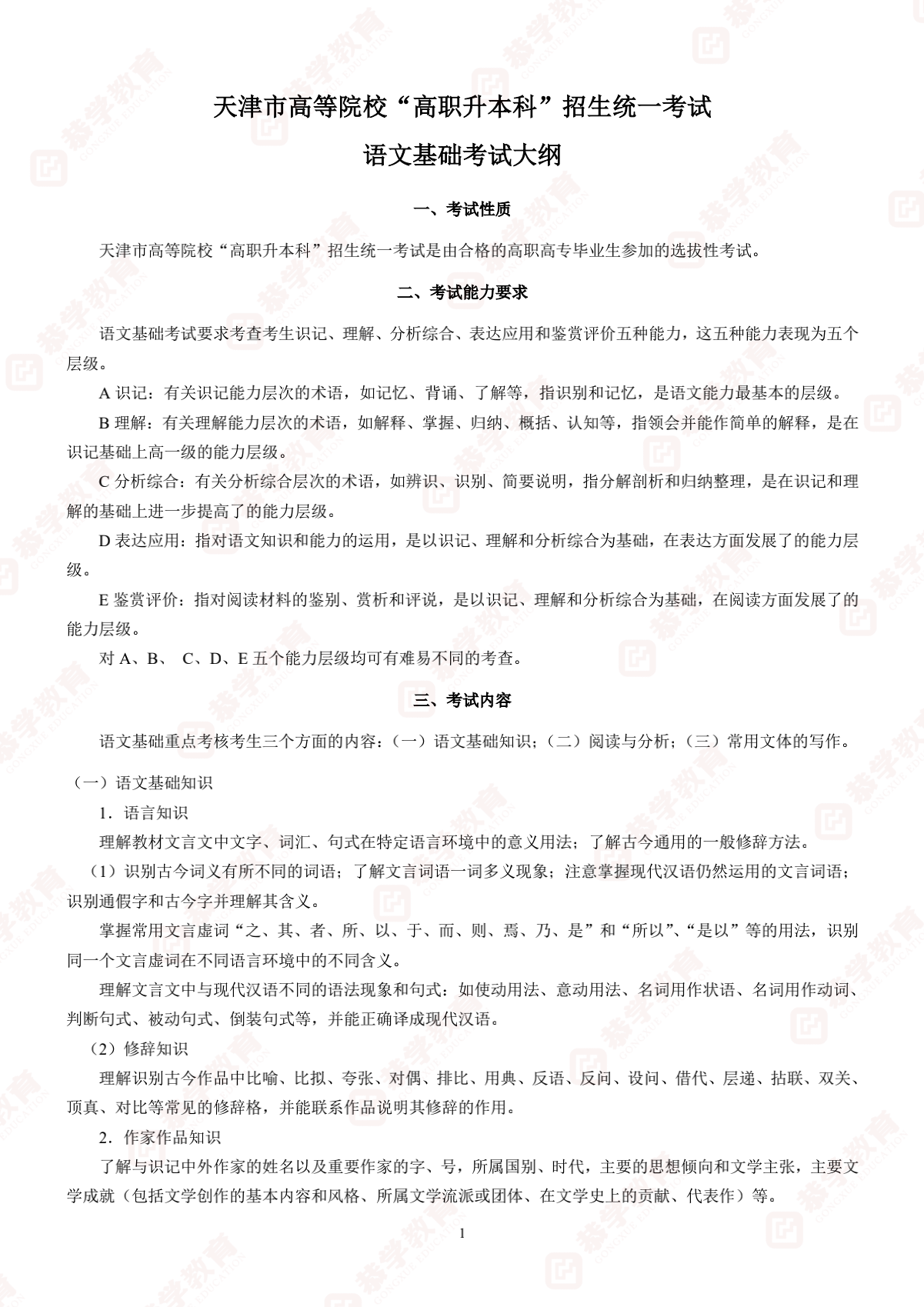 天津专升本|2022年天津市高职升本文化课大纲(语文)