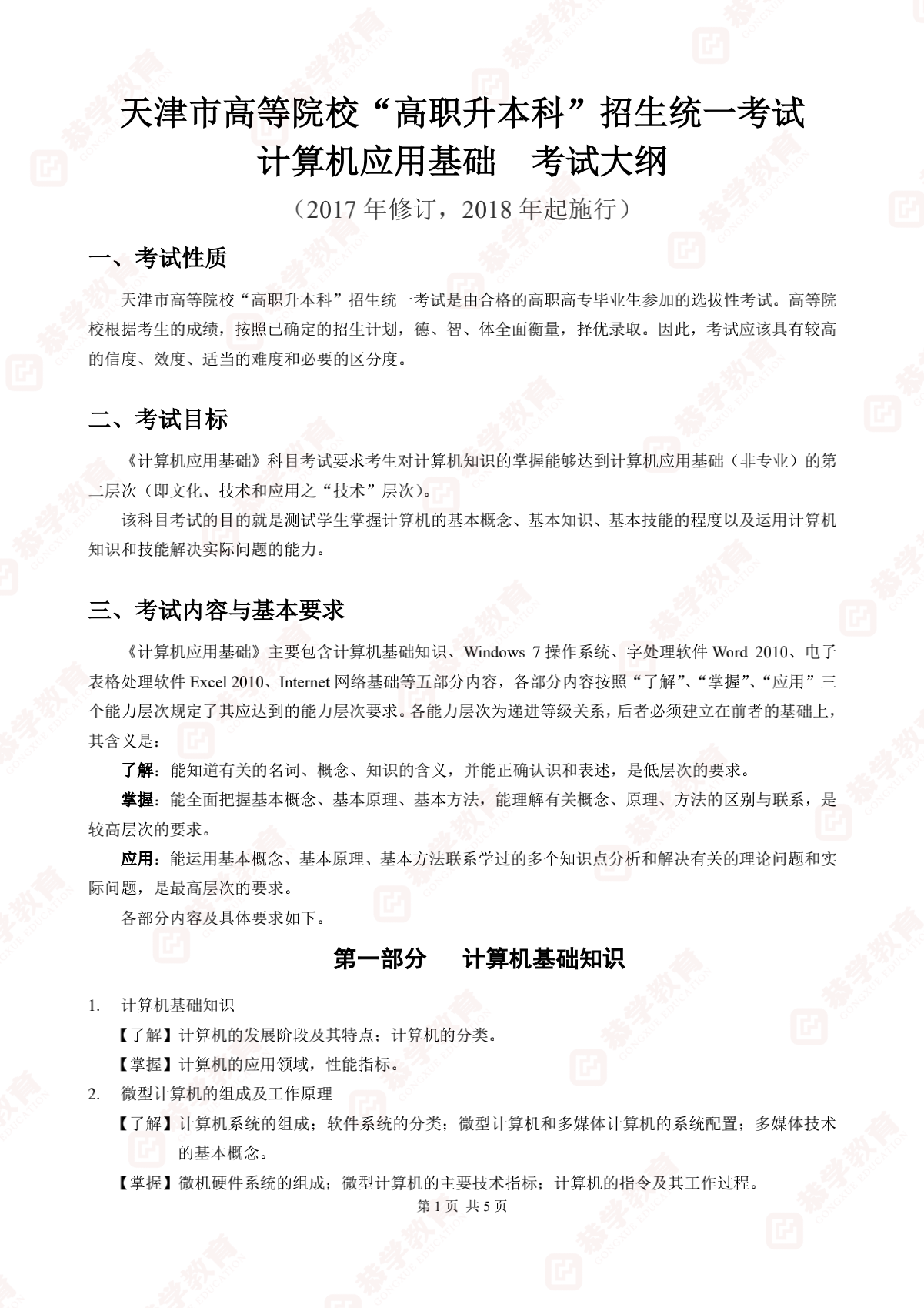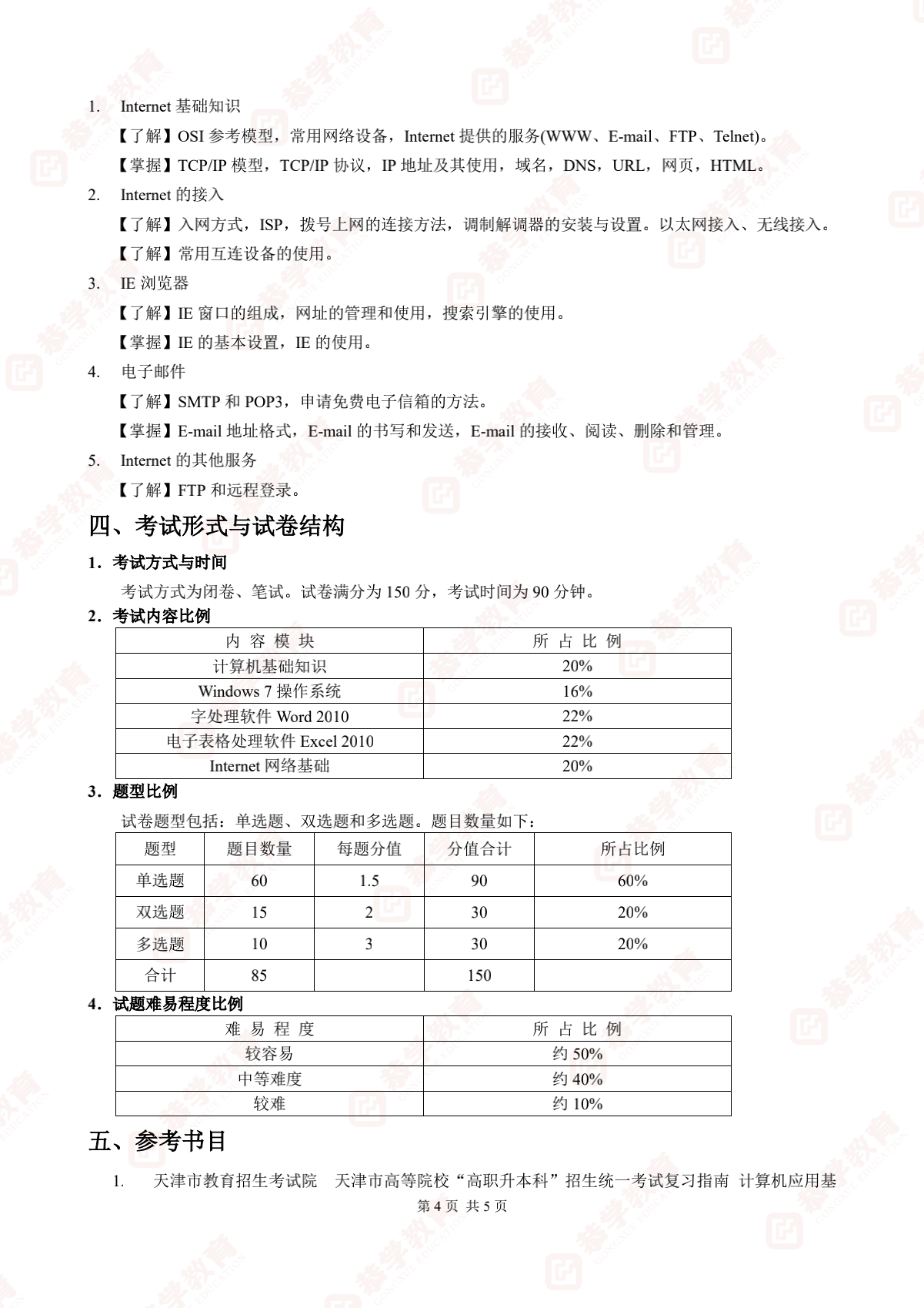 天津专升本|2022年天津市高职升本文化课大纲(计算机)