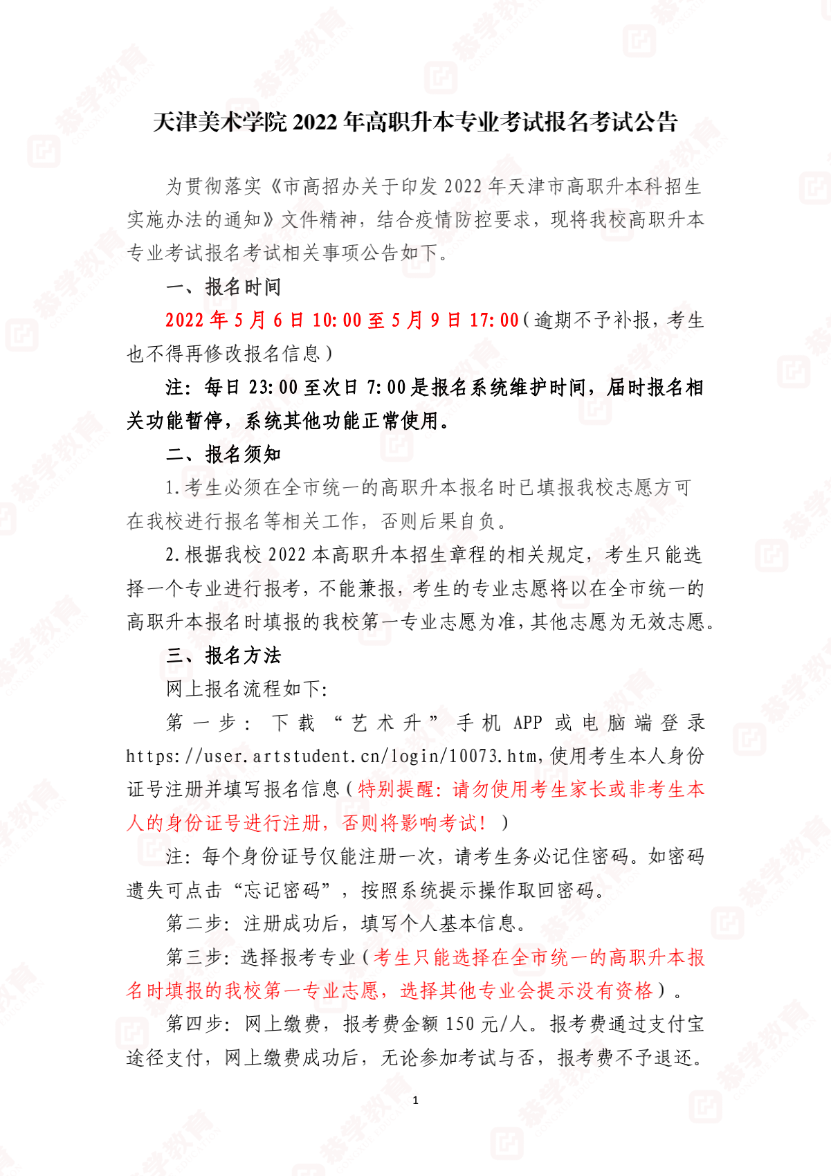 天津专升本|天津美术学院2022年高职升本专业考试报名考试公告