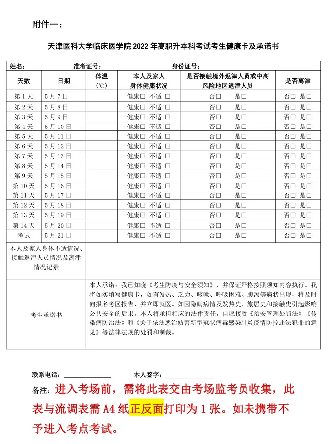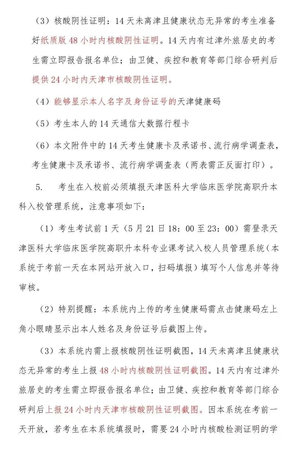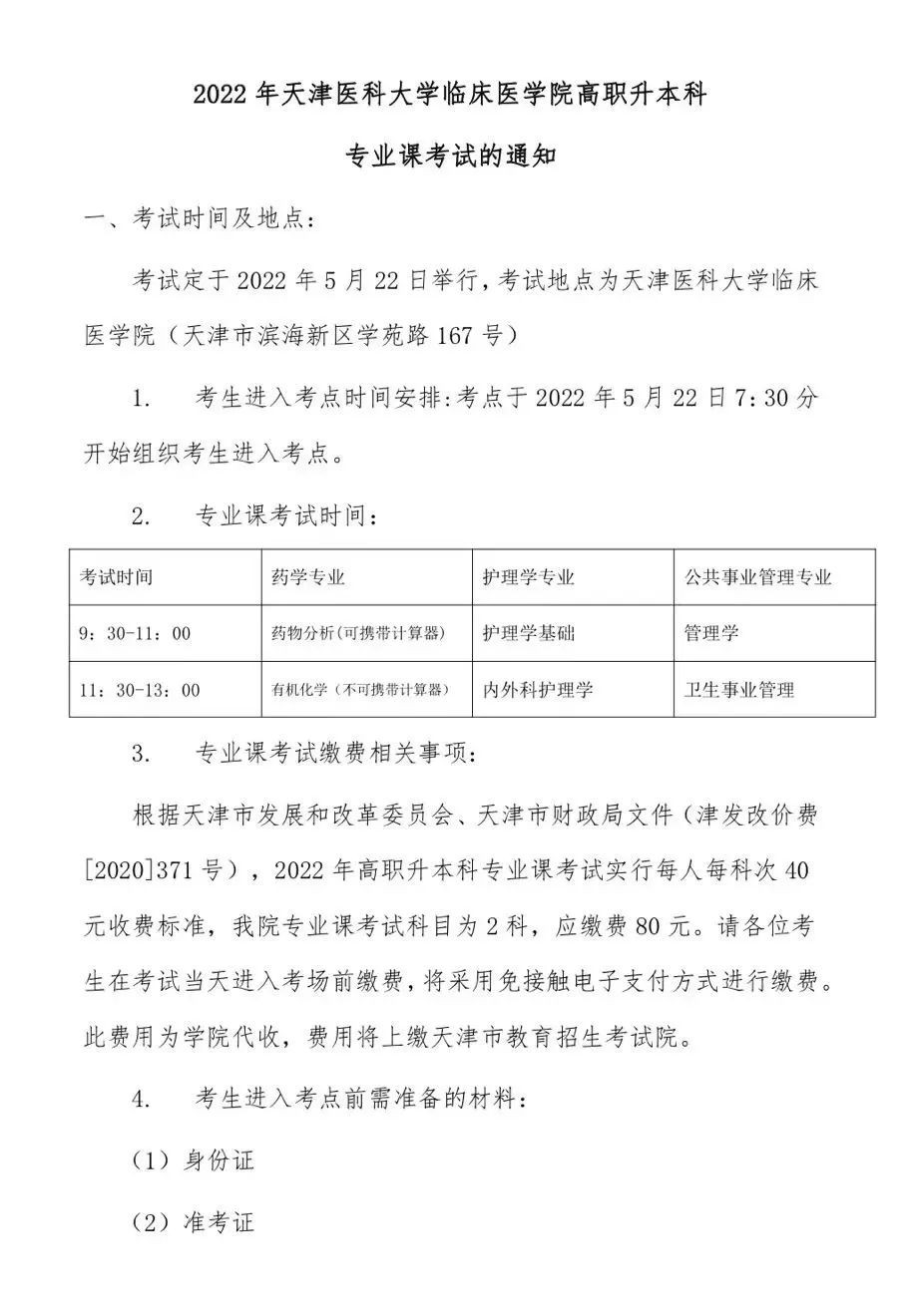 天津专升本|2022年天津医科大学临床医学院高职升本科专业课考试的通知!