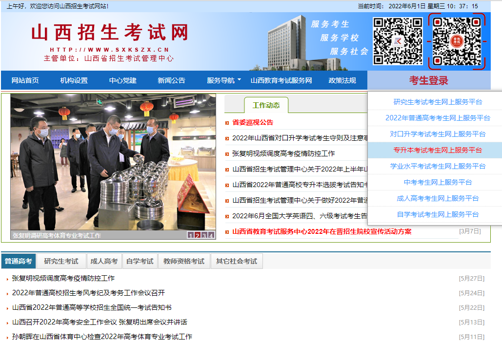 1、登录山西招生考试网点击“专升本考试考生网上服务平台”。
