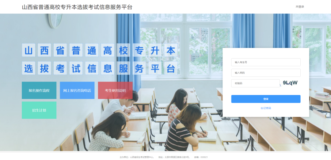 2、进入“山西省普通高校专升本选拔考试信息服务平台”,在登录页面,输入正确的考生号和密码。