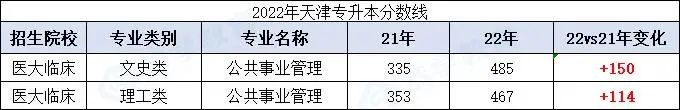 第三,则是天津医科大学公共事业管理,我们根据往年分数线来看,它是增长分数最高的一个专业,但是据不完全统计,22年专业课分数线普遍较高,从而造成整体分数线涨幅这么大