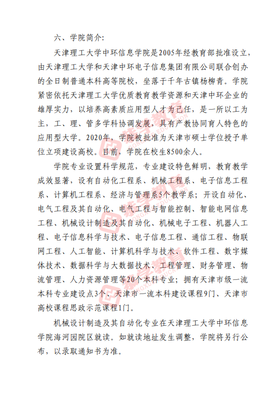 【 天津理工大学中环信息学院】2024年高职升本科招生章程