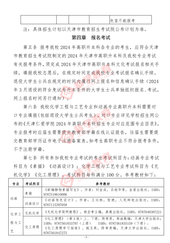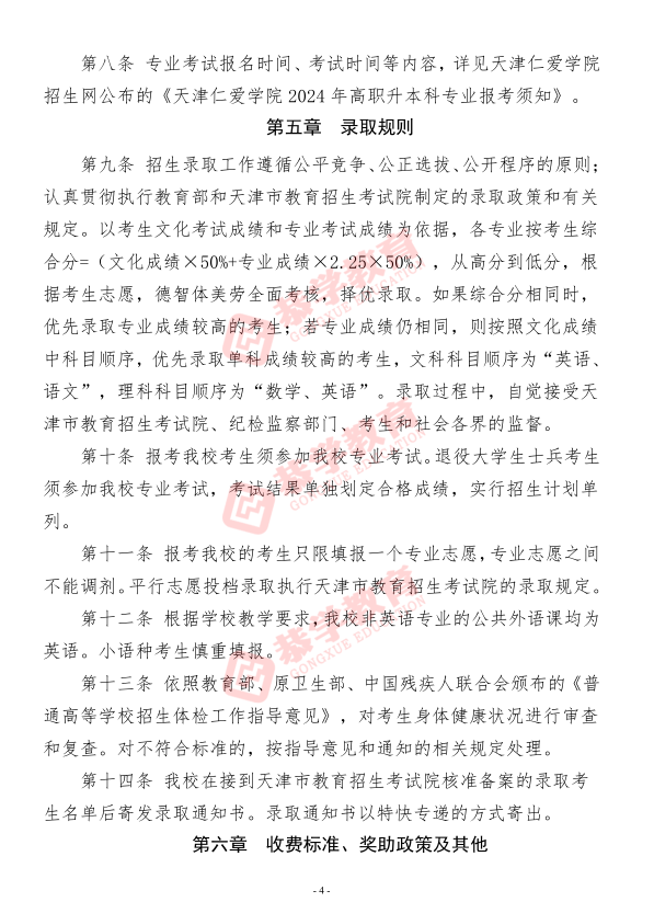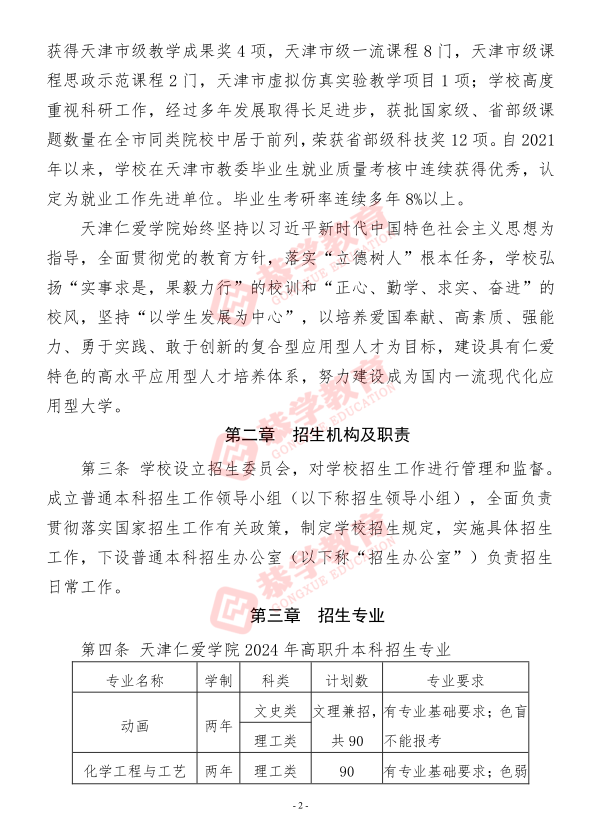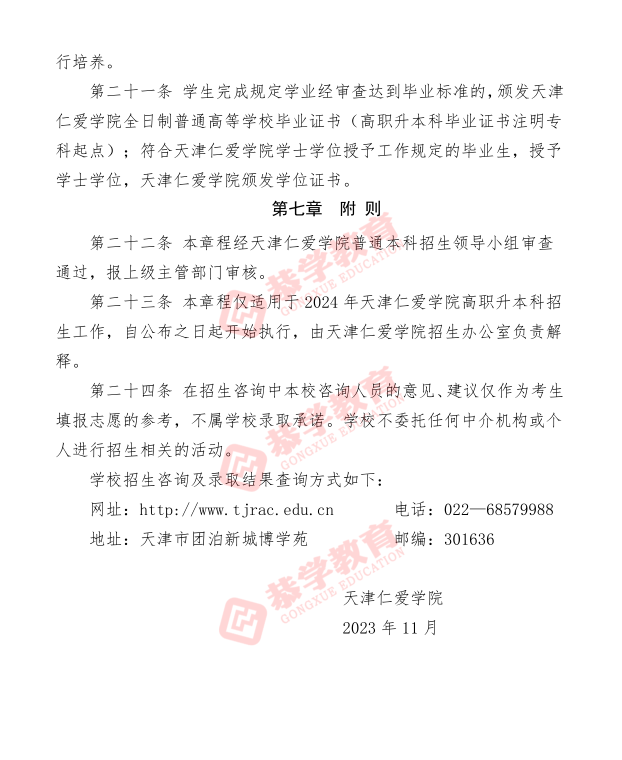 【天津仁爱学院】2024年高职升本科招生章程
