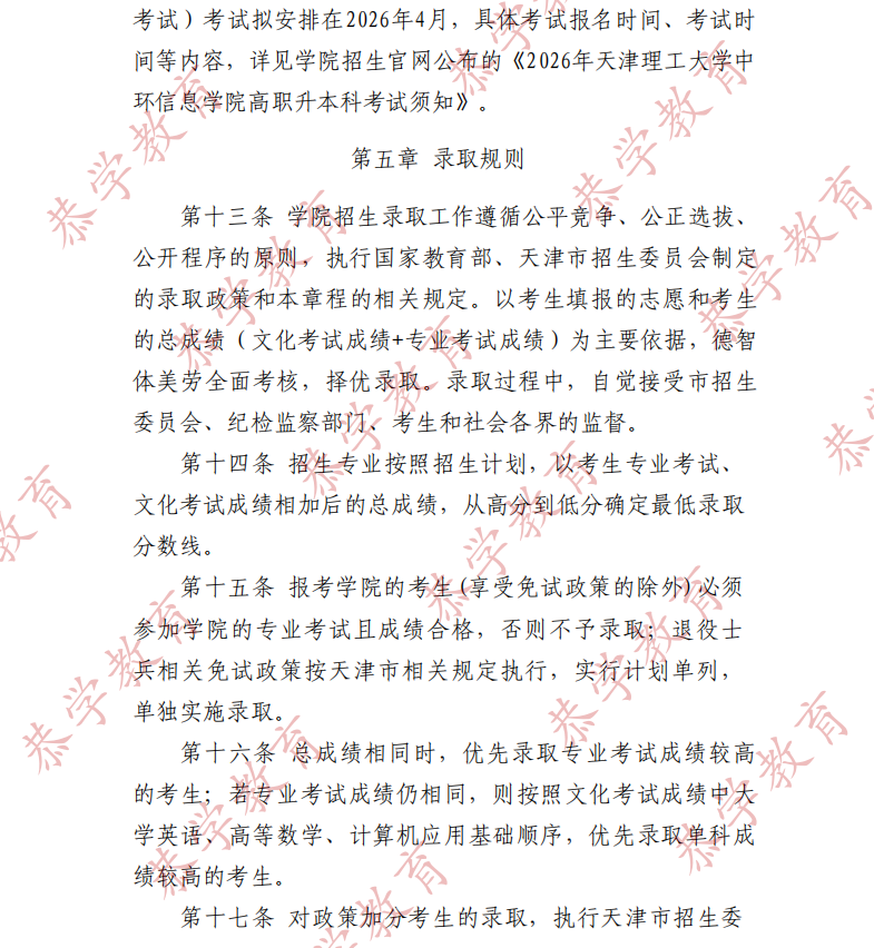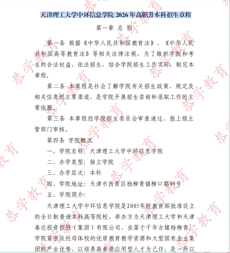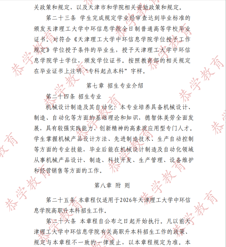【天津理工大学中环信息学院】 2026 年高职升本科招生章程