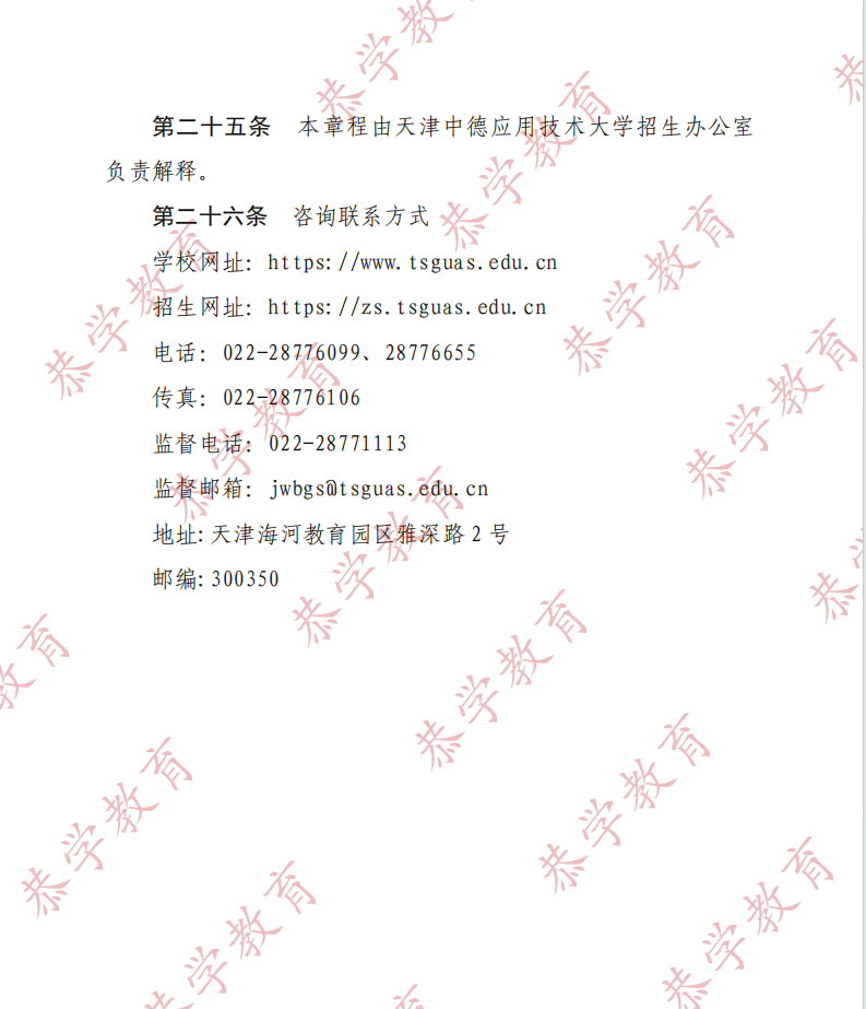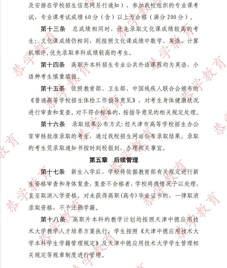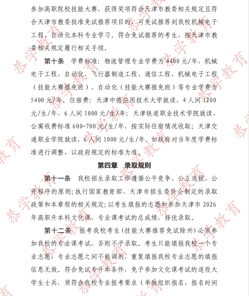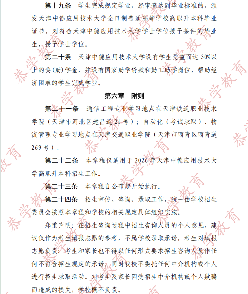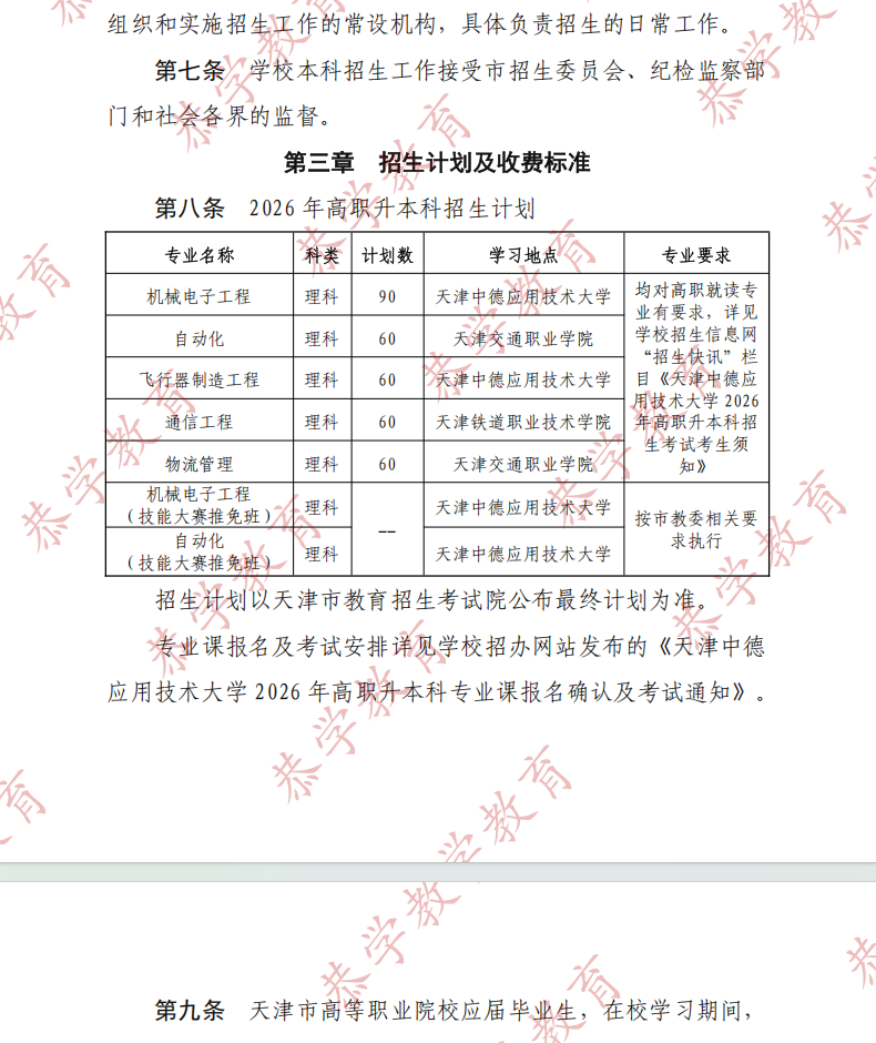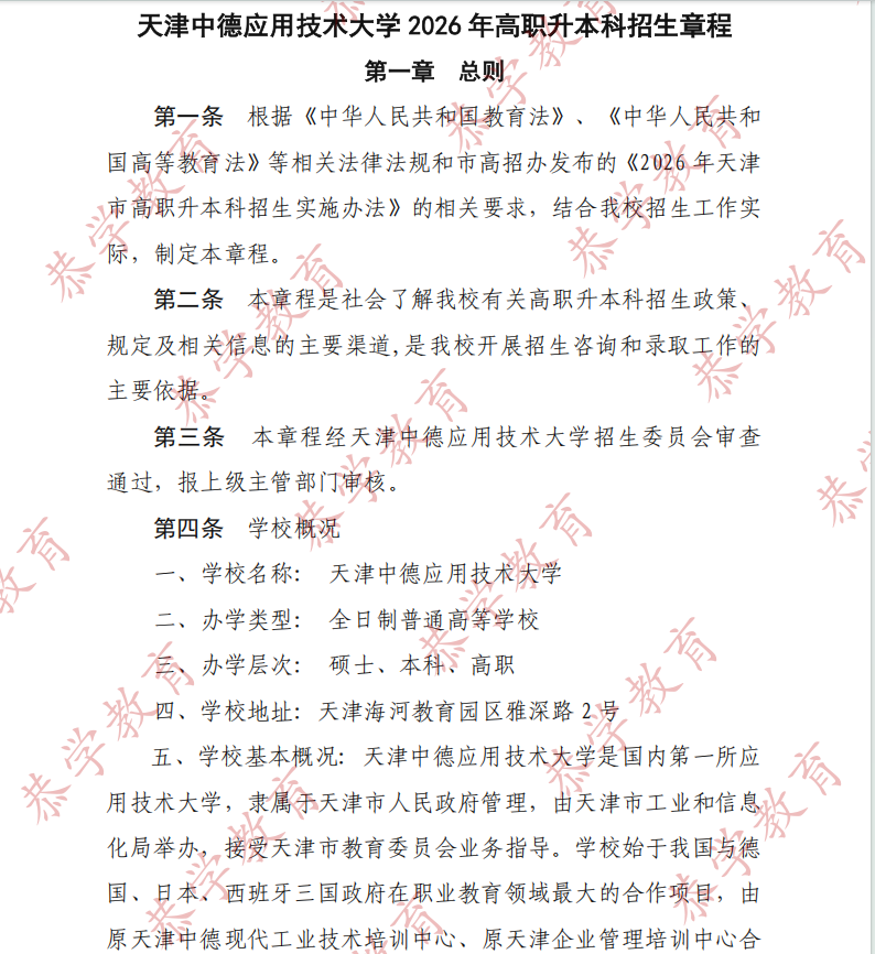 【天津中德应用技术大学】 2026 年高职升本科招生章程