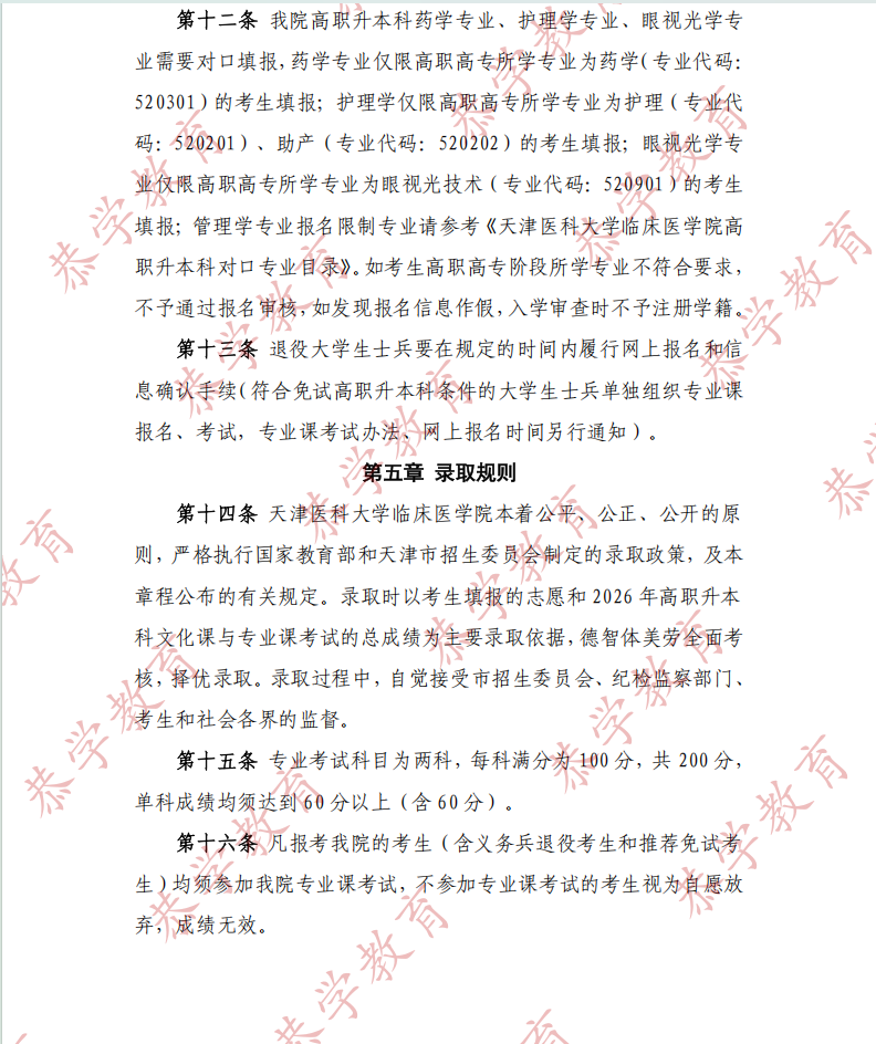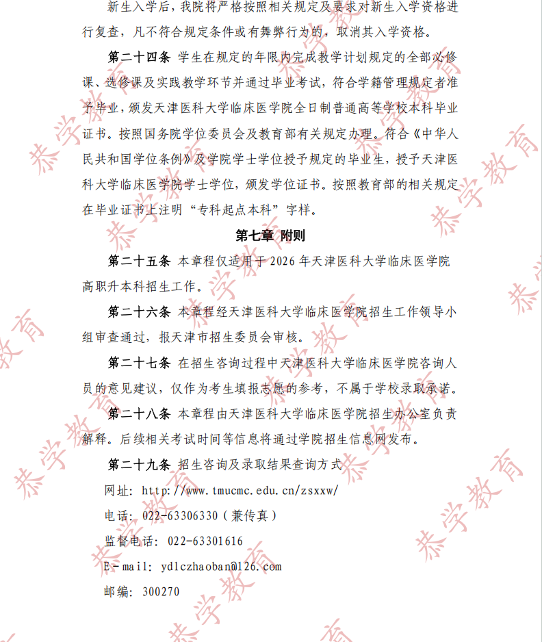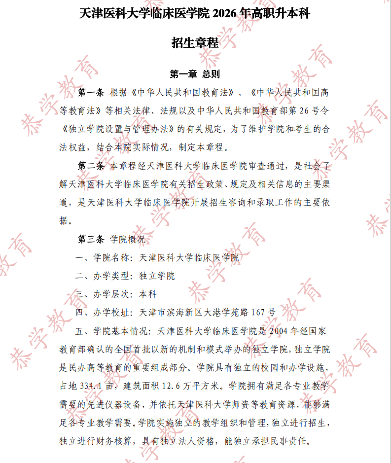 【天津医科大学临床医学院 】2026 年高职升本科