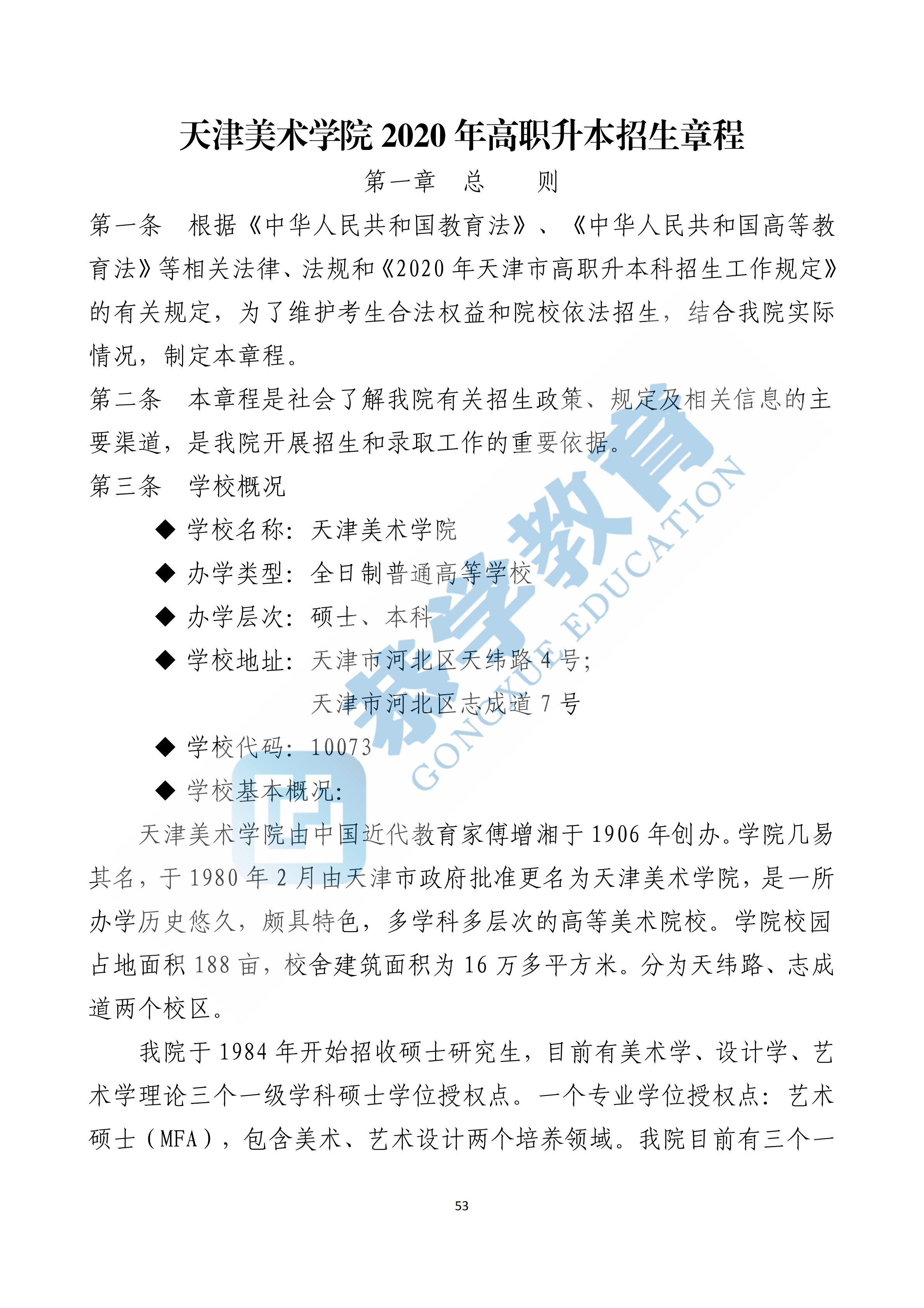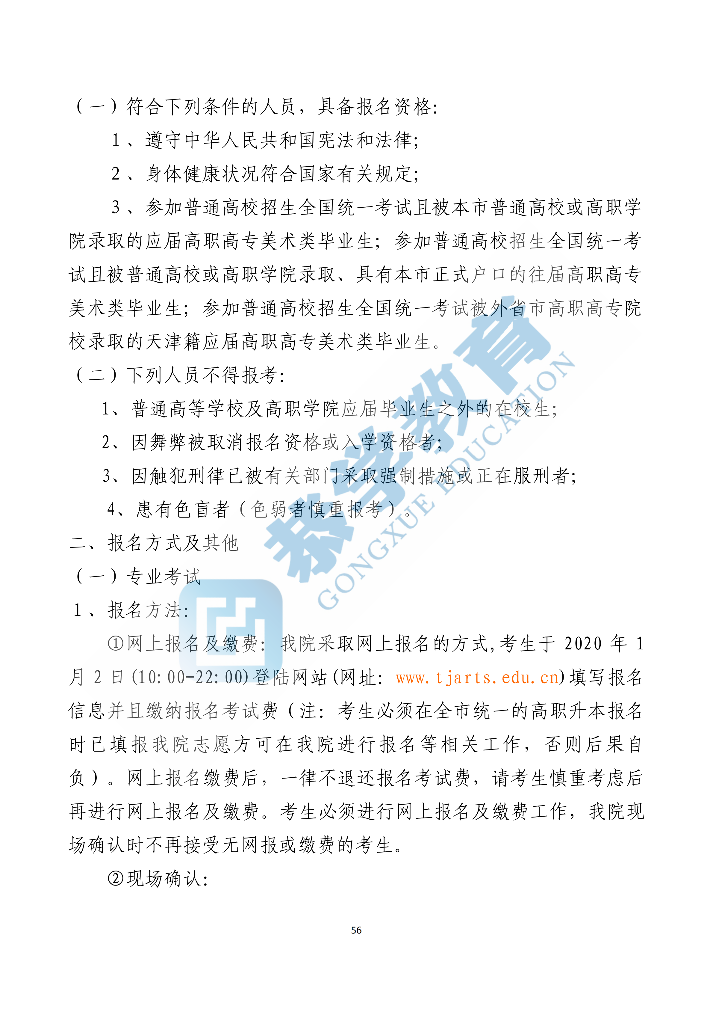 恭学网校|天津美术学院2020年高职升本科招生章程