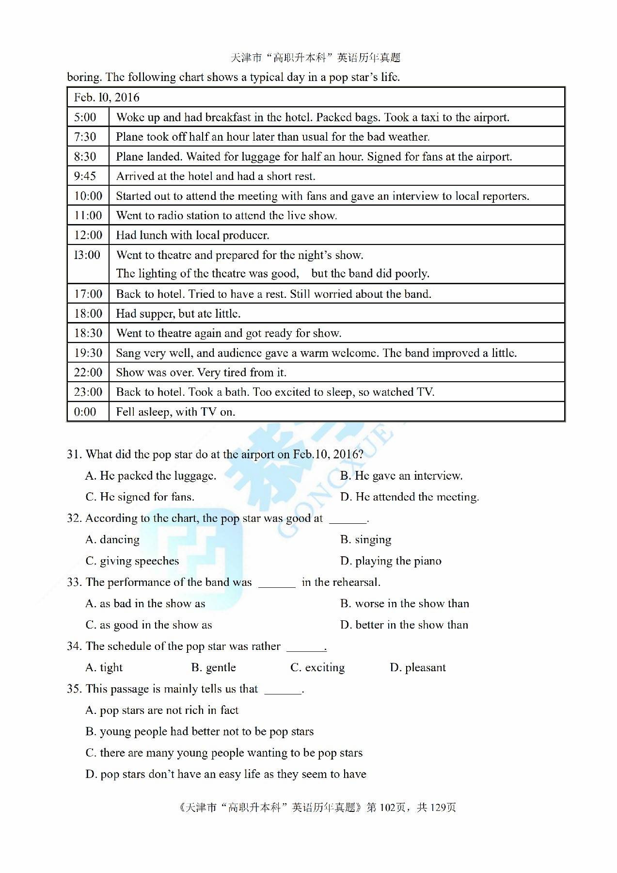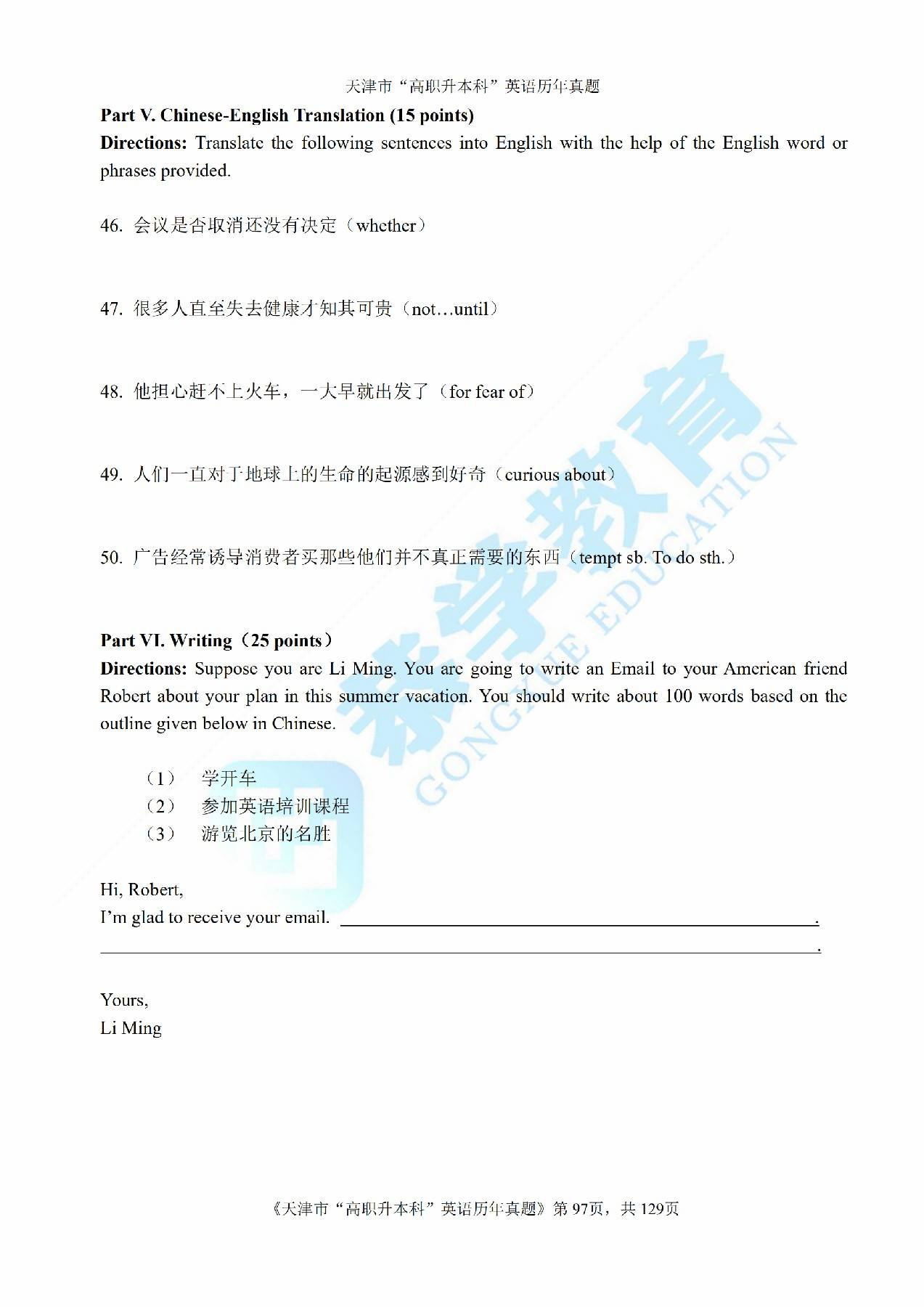 恭学网校|天津专升本历年真题:2015年专升本英语真题及答案