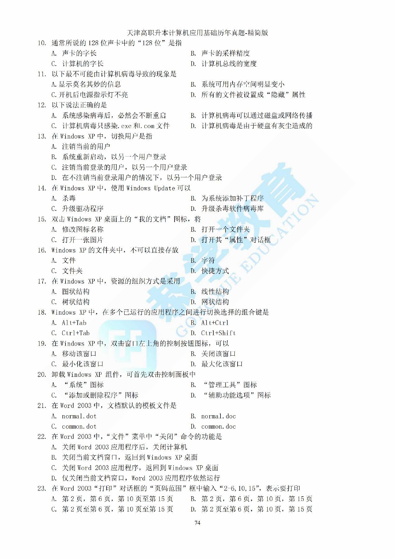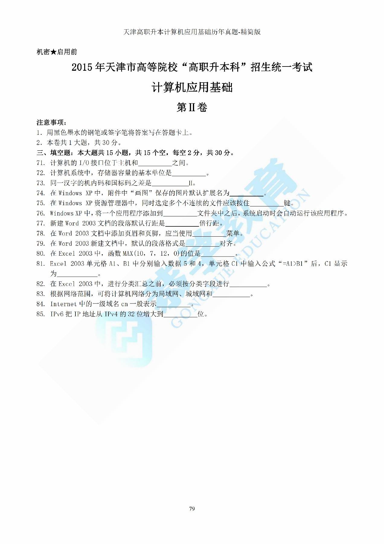2015年天津市高等院校“高职升本科”招生统一考试高等计算机真题及答案