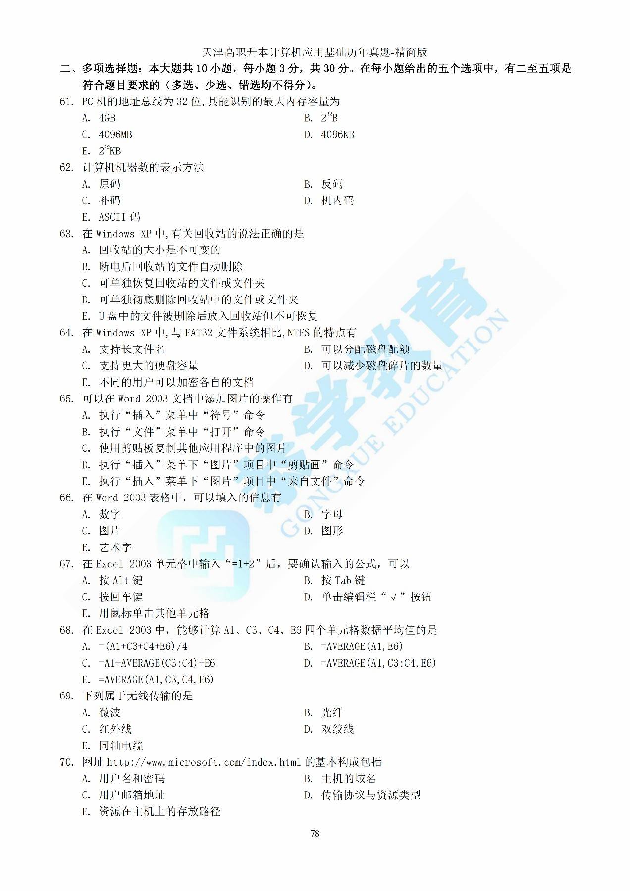 恭学网校|天津专升本历年真题:2015年专升本计算机真题及答案