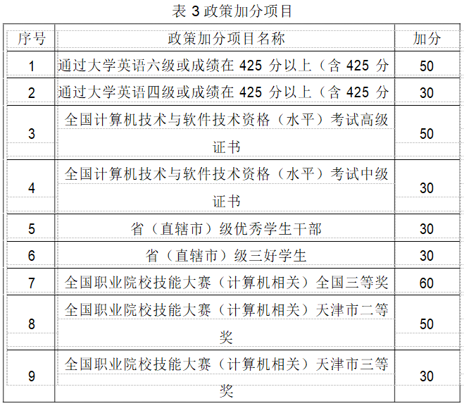 第十六条 政策加分项目(政策加分项目不累加),见表 3: