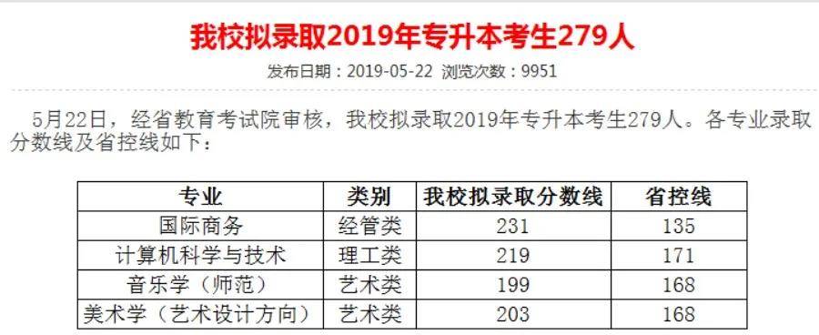 都很关注该校往年的专升本分数线