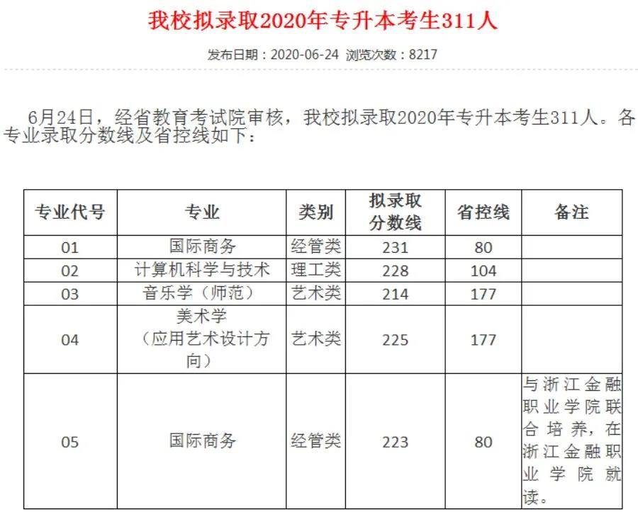 【恭学教育】浙江升本院校分数线