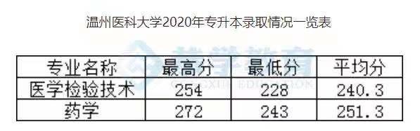 恭学网校|浙江升本院校:温州医科大学2020年专升本分数线