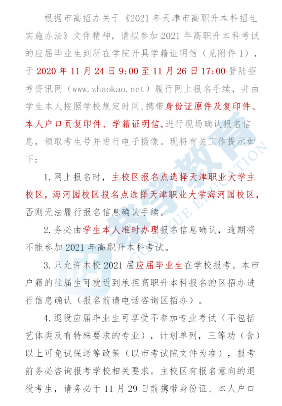 天津职大|2021年天津职业大学高职升本科报名通知天津专升本