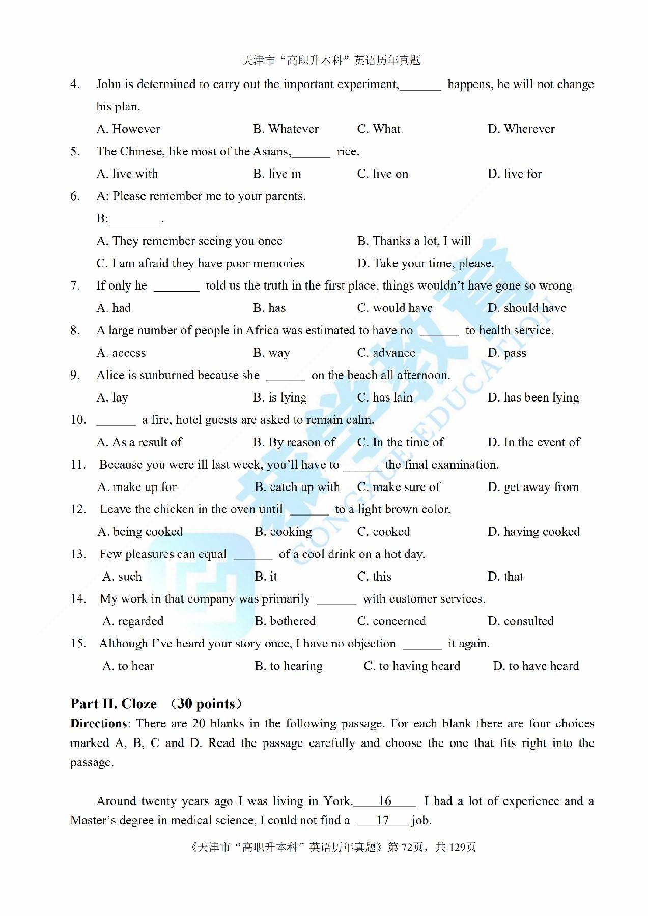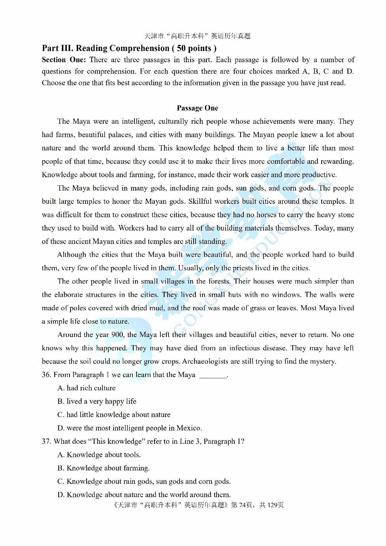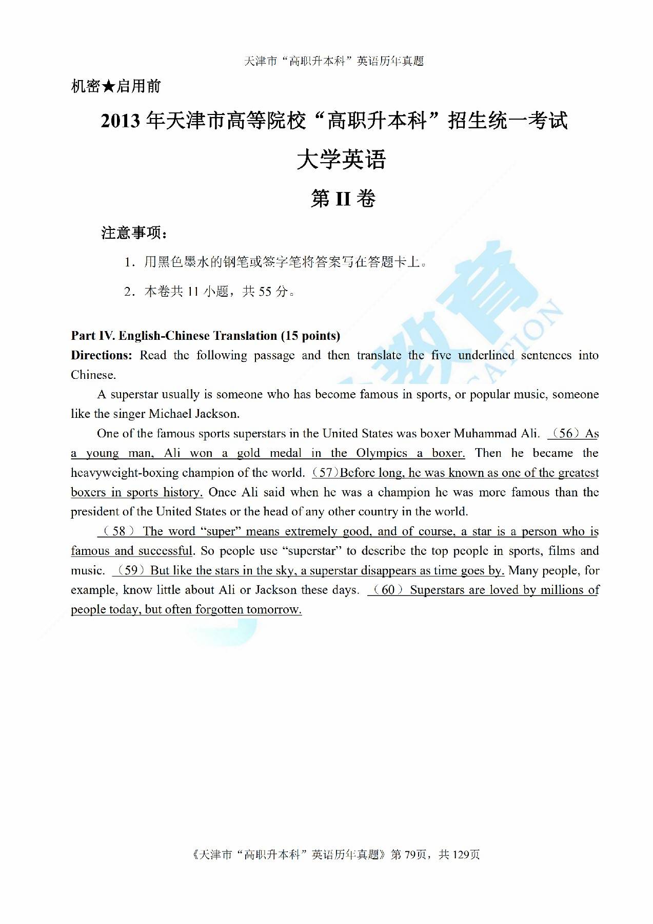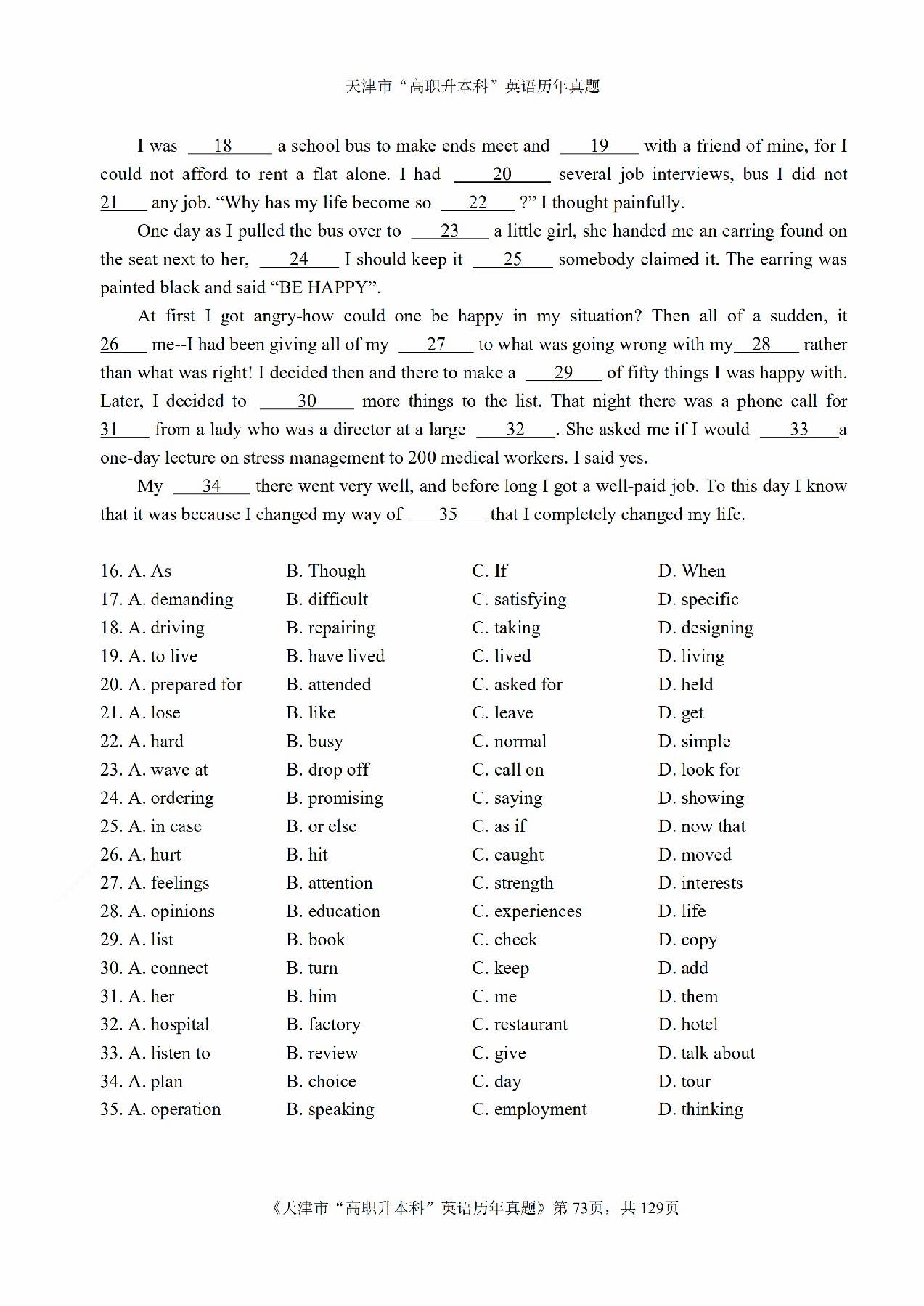 2013年天津市高等院校“高职升本科”招生统一考试高等英语真题及答案