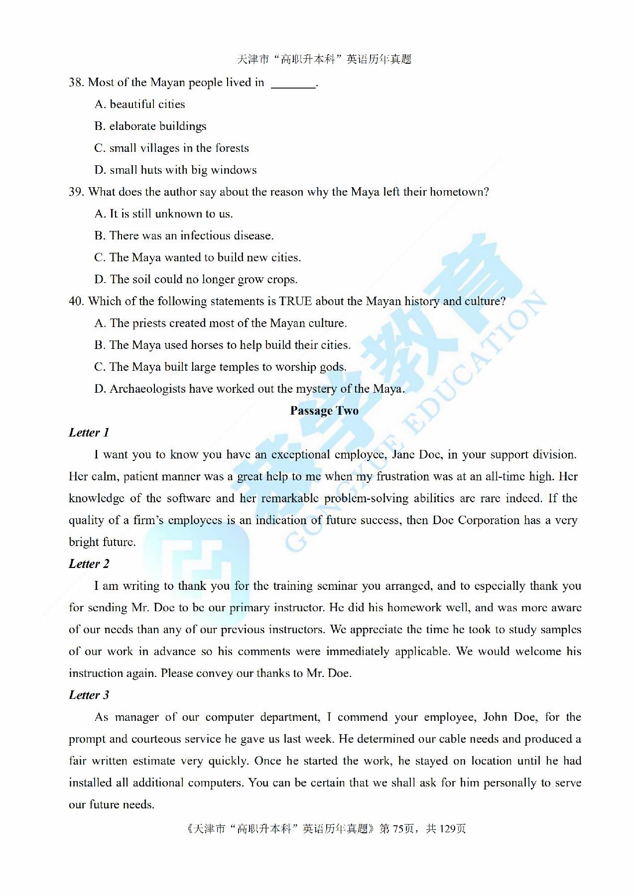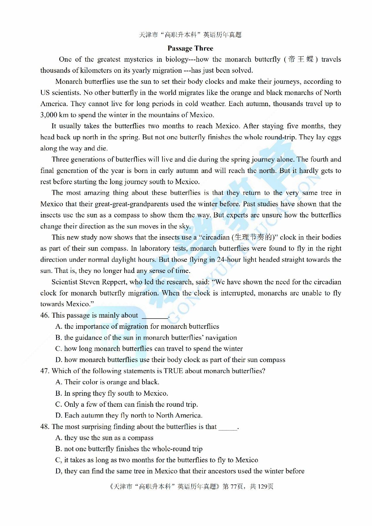 【恭学教育】专升本历年真题