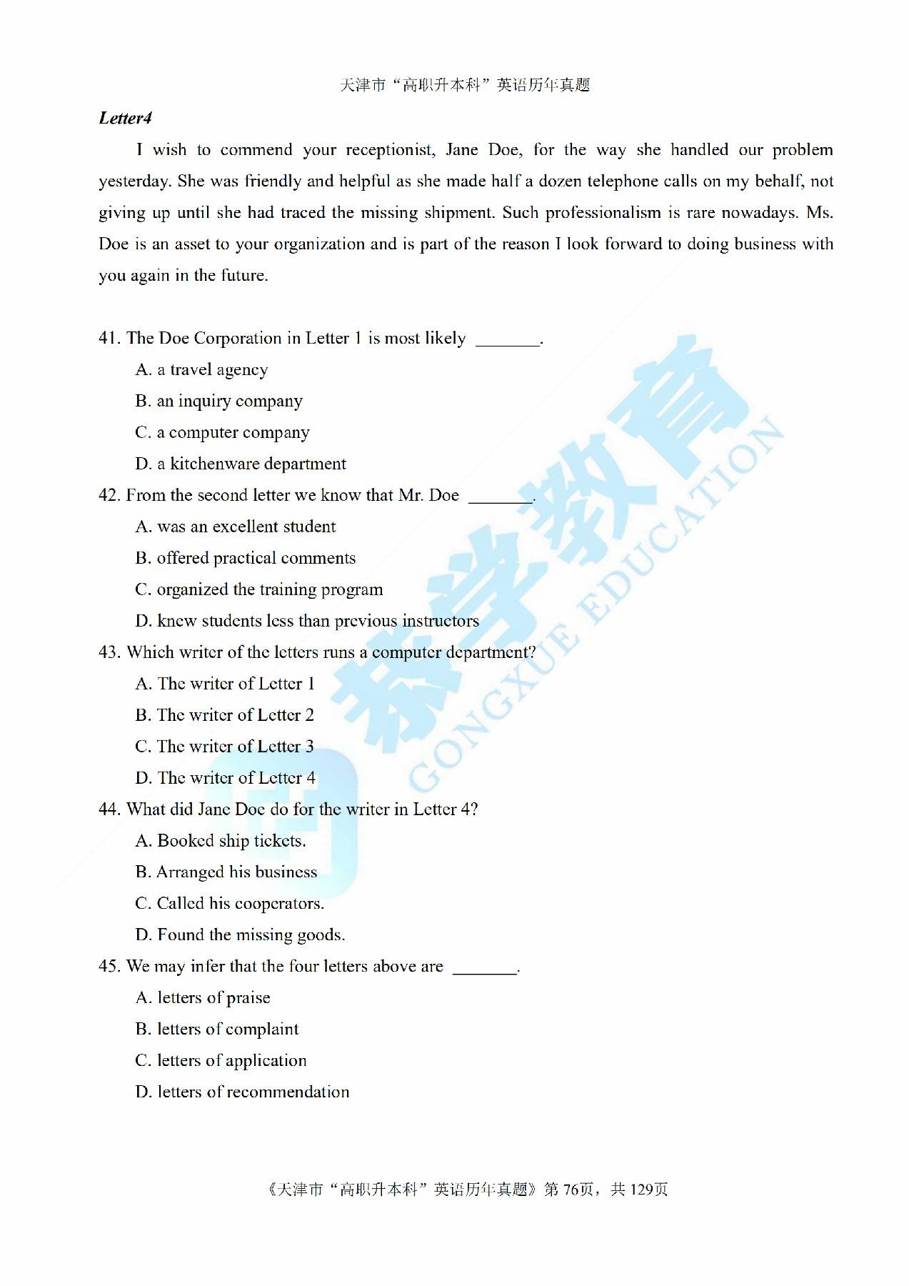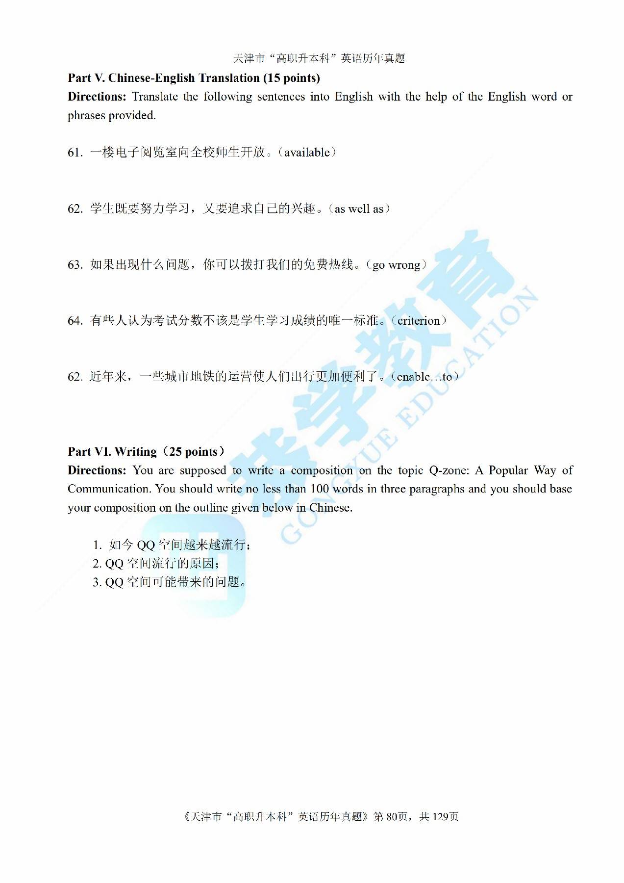 恭学网校|天津专升本历年真题:2013年专升本英语真题及答案