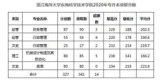 恭学网校|浙江升本院校:浙江海洋大学东海科学技术学院2020年专升本分数线