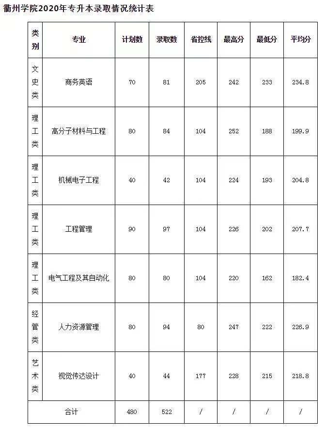 恭学网校|浙江升本院校:衢州学院2020年专升本分数线