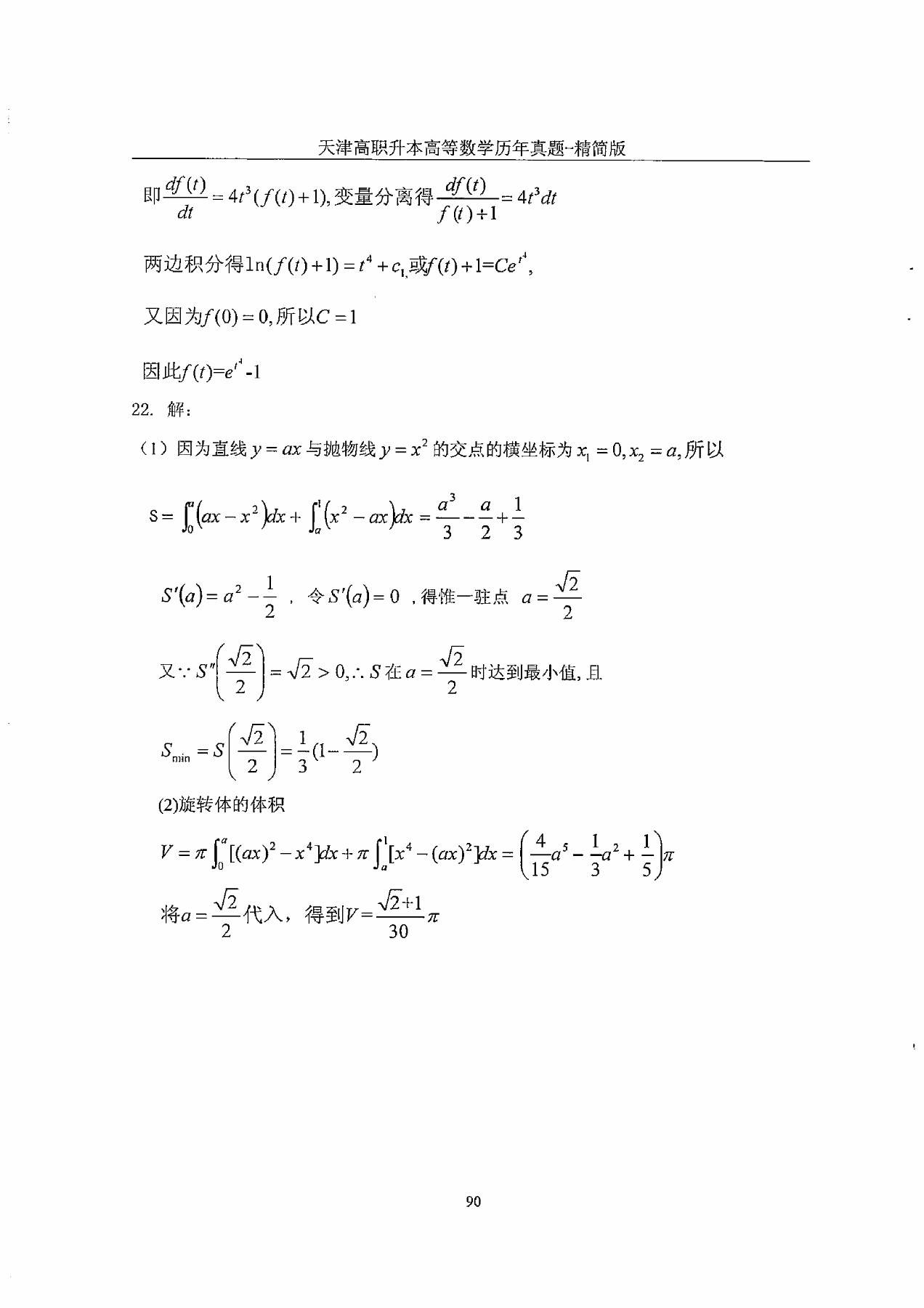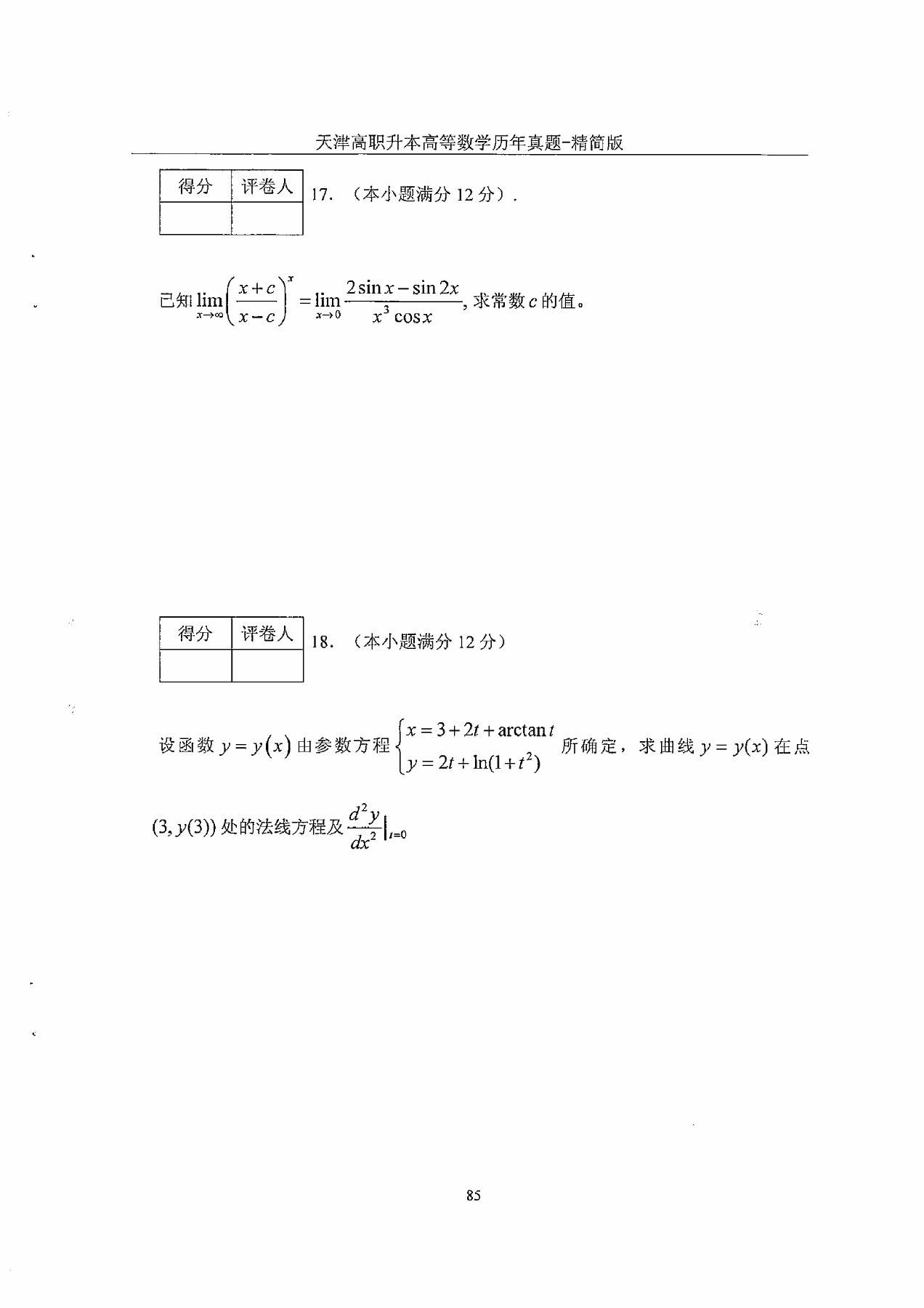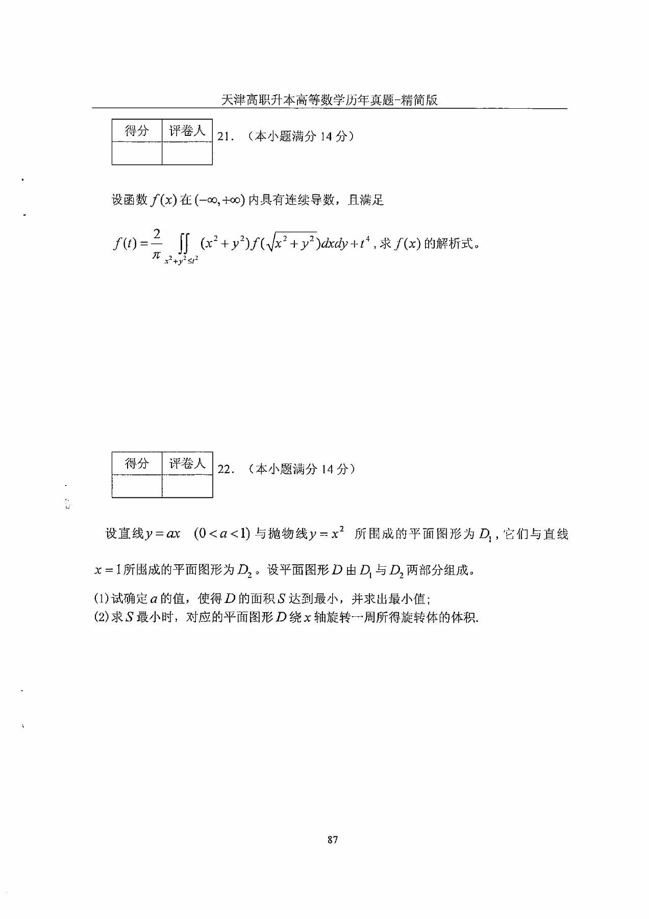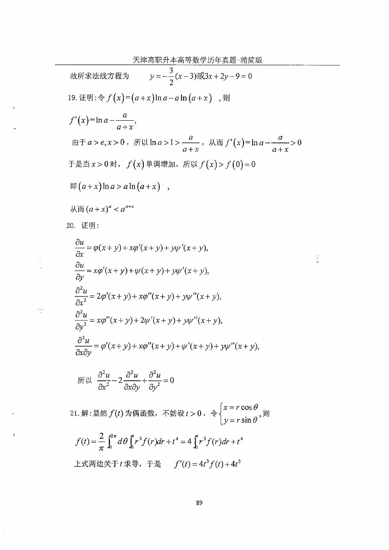 2013年天津市高等院校“高职升本科”招生统一考试高等数学真题及答案
