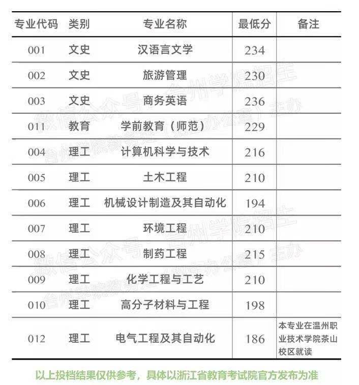 【恭学教育】浙江升本院校分数线