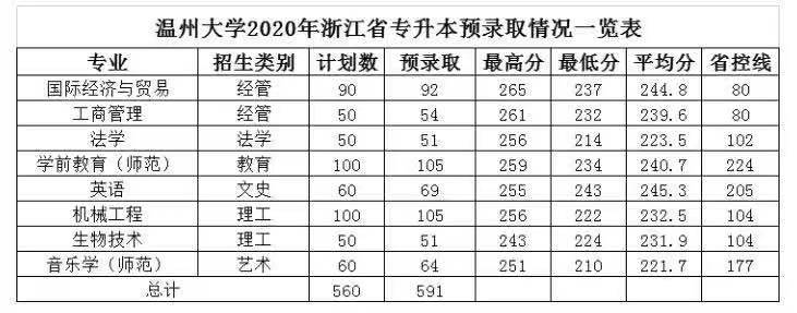 恭学网校|浙江升本院校:温州大学2020年专升本分数线
