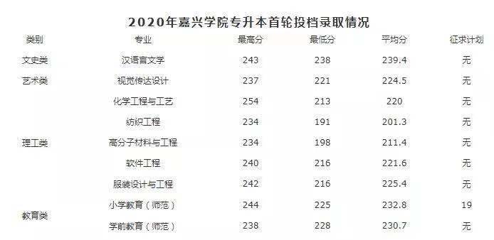 恭学网校|浙江升本院校:嘉兴学院2020年专升本分数线