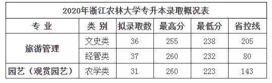 恭学网校|浙江升本院校:浙江农林大学2020年专升本分数线