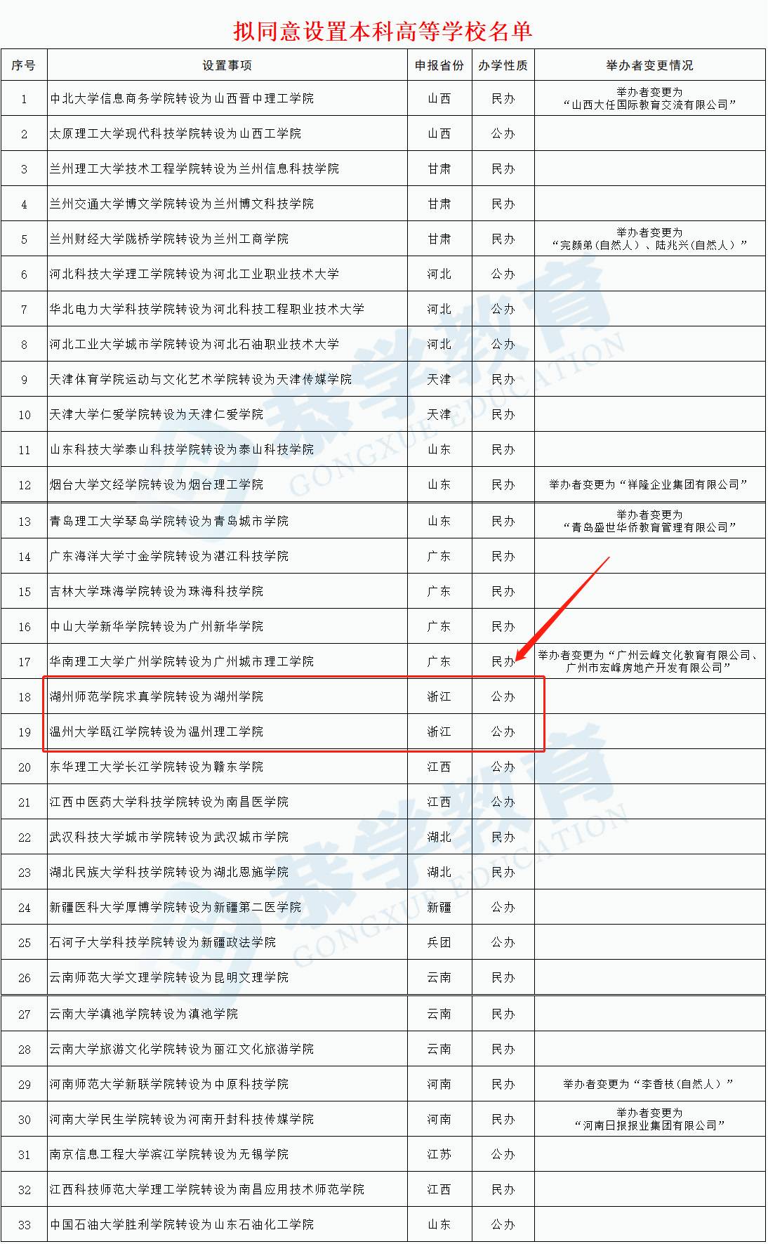 教育部拟同意设置本科高等学校名单: