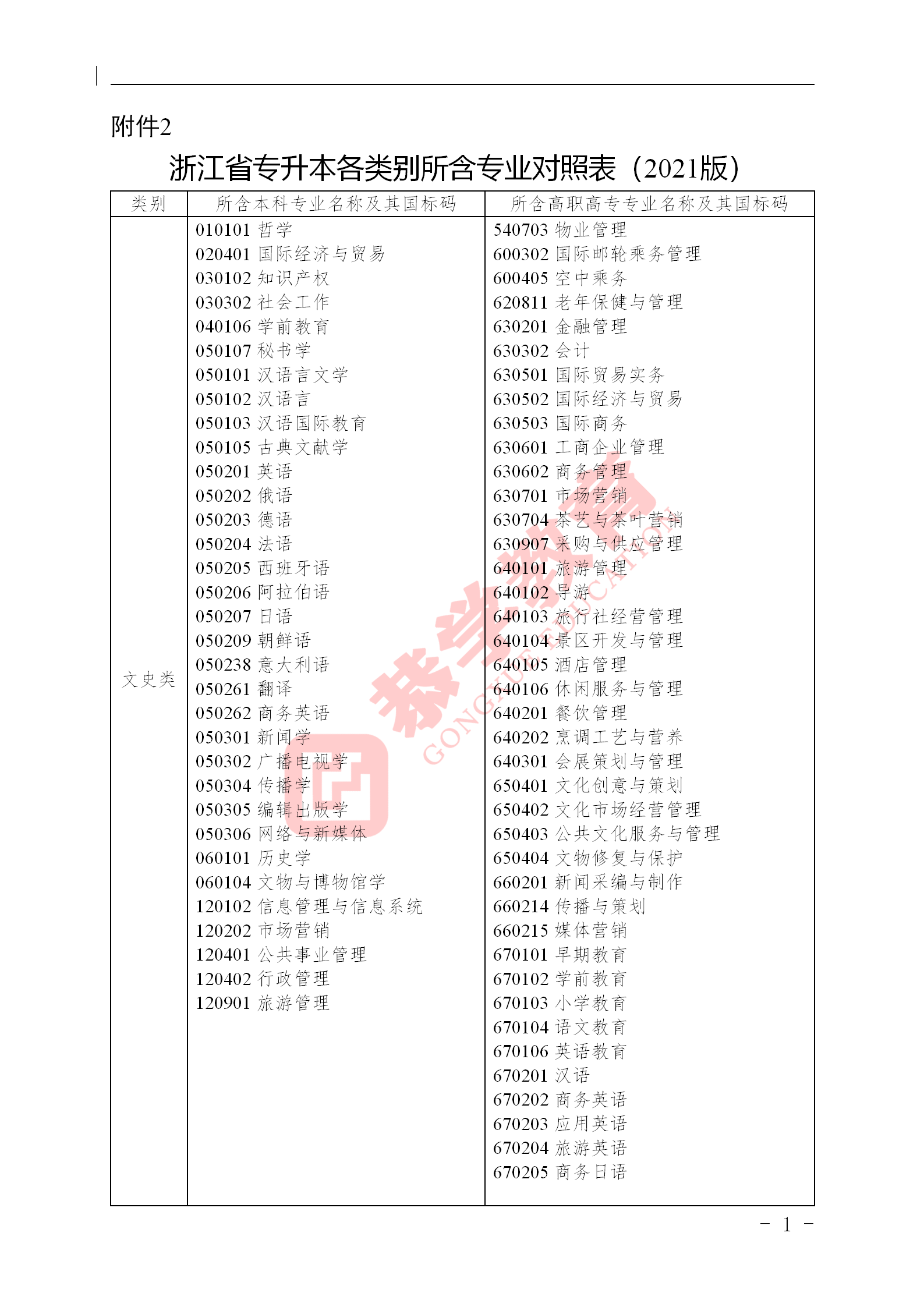 重磅!2021年浙江省专升本各类别所含专业对照表!