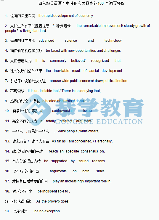 恭学网校|专升本、四六级英语写作中100个高频词语搭配(一)