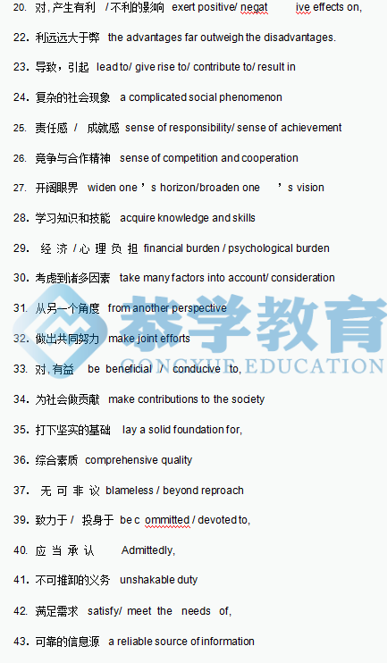 恭学网校|专升本、四六级英语写作中100个高频词语搭配(二)