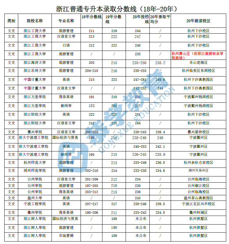 这篇内容汇总了浙江专升本2018年-2020年的各院校各专业录取分数线信息,同学们可以参考这些分数线信息,填报志愿!