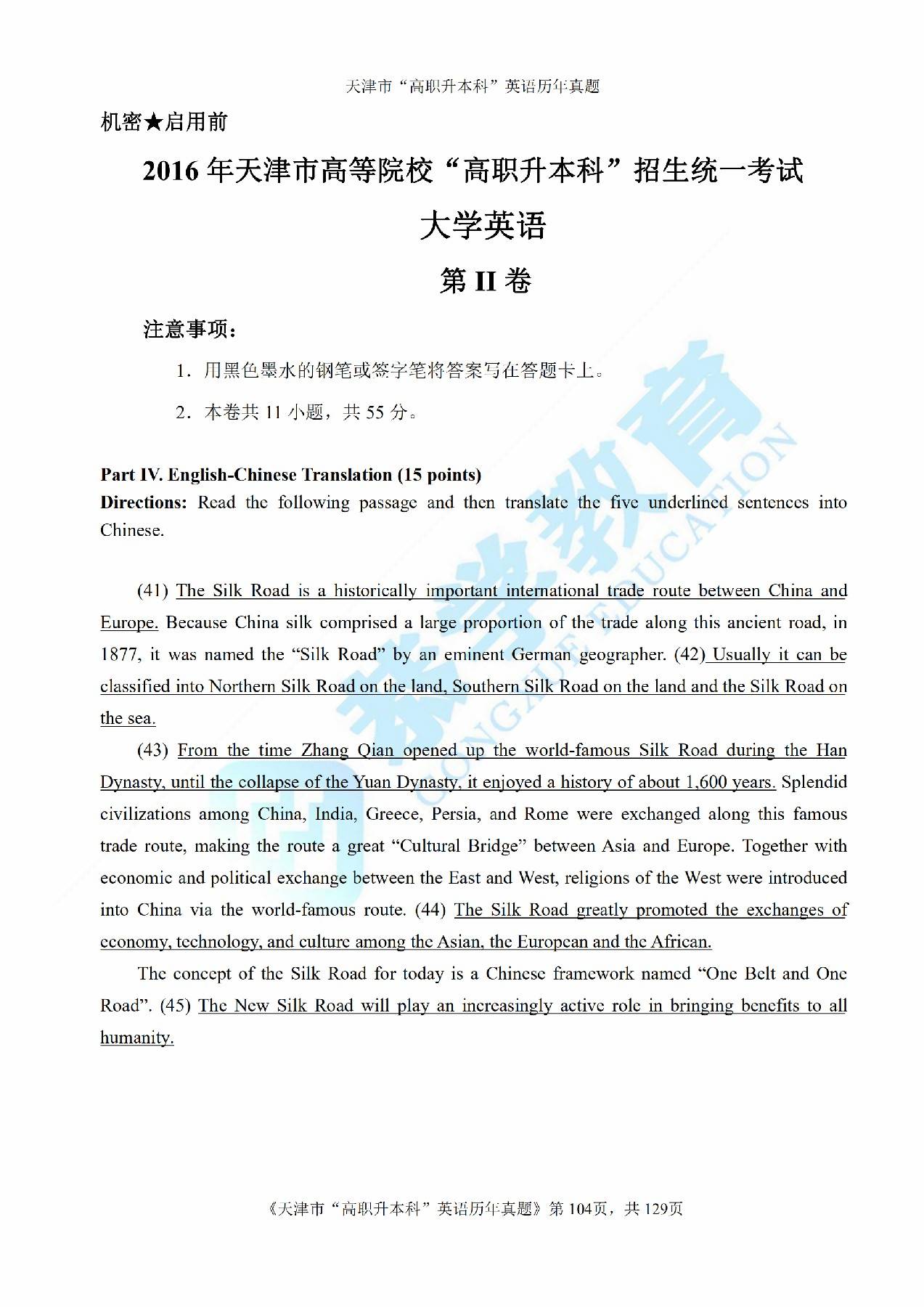 恭学网校|天津专升本历年真题:2016年专升本英语真题及答案