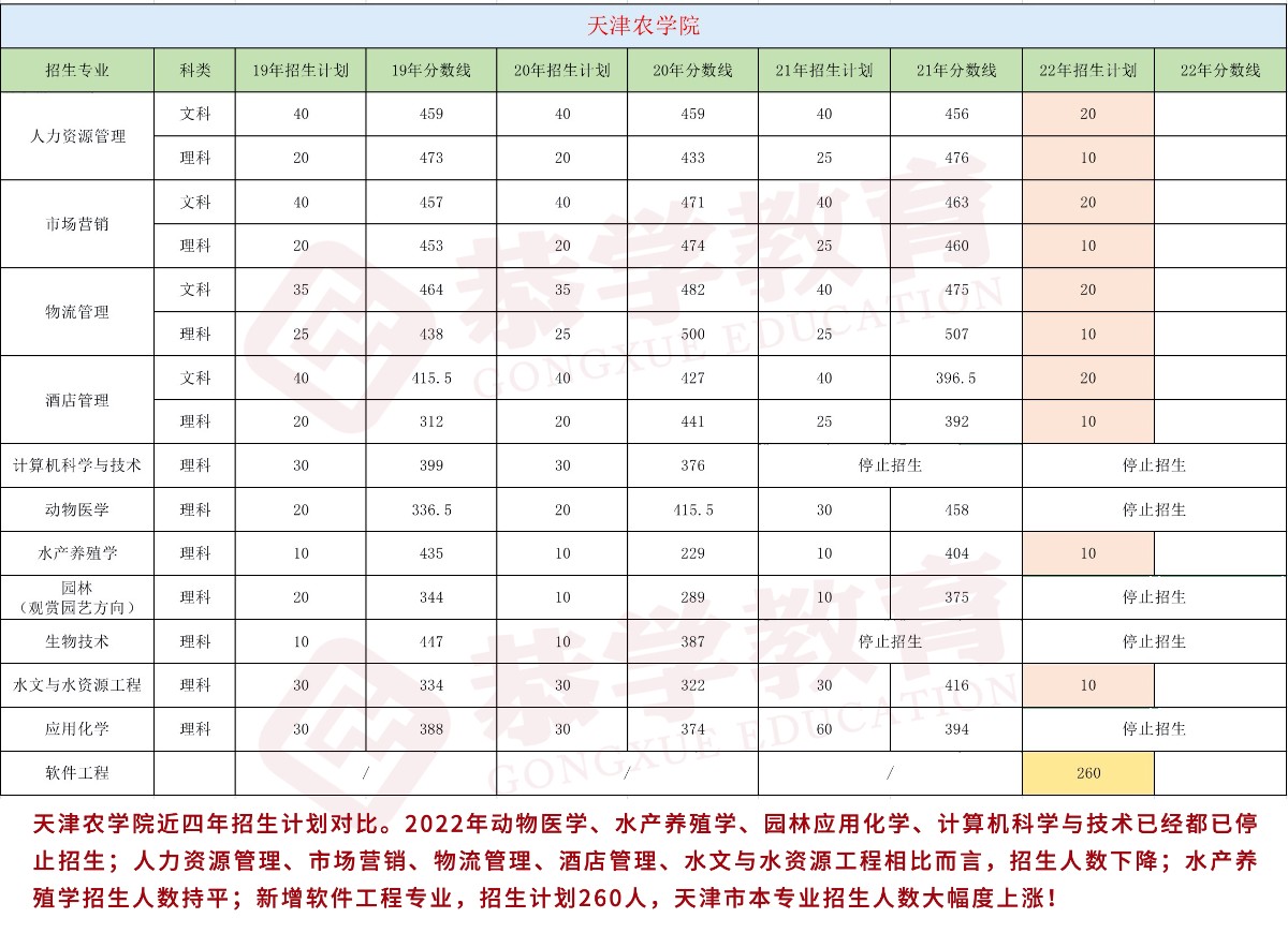 天津专升本|19-22年天津农学院高职升本科招生计划对比图